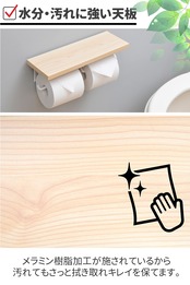 ●天板は水分やキズに強いメラミン加工だから、トイレでも安心して使える