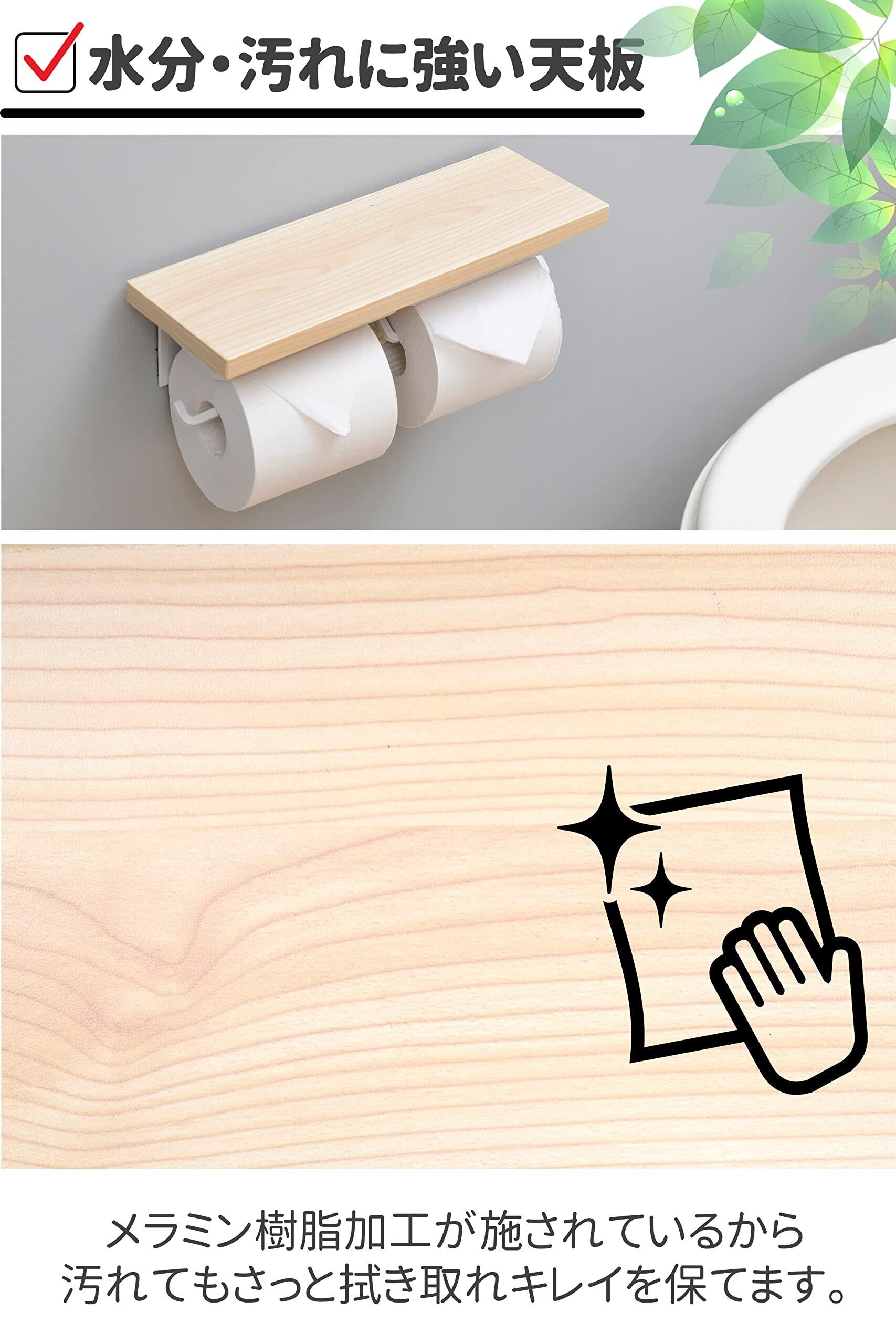 山善(YAMAZEN) トイレットペーパーホルダー 棚付き (スマホ置き/インテリア) ダブル 汚れに強い天板 かんたん設置 幅32×奥行11×高さ9cm ウッドナチュラル/マットホワイト RPH-W(WN/MWH)