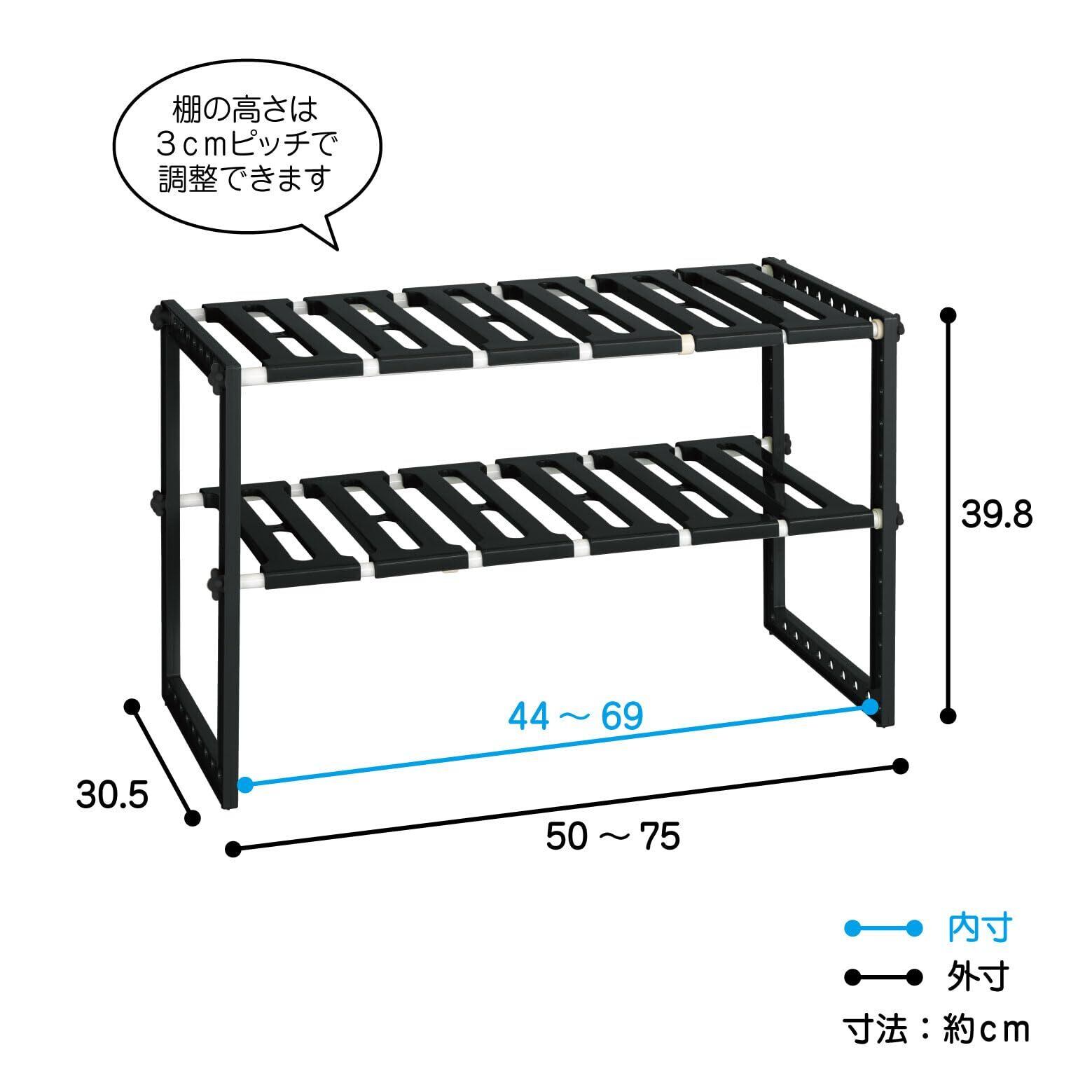 Belca(ベルカ) キッチン収納 シンク下フリーラック 伸縮タイプ 幅50~75×奥行30.3×高さ39.8cm ブラック スライド シンク下収納 2段 棚 VR-BK