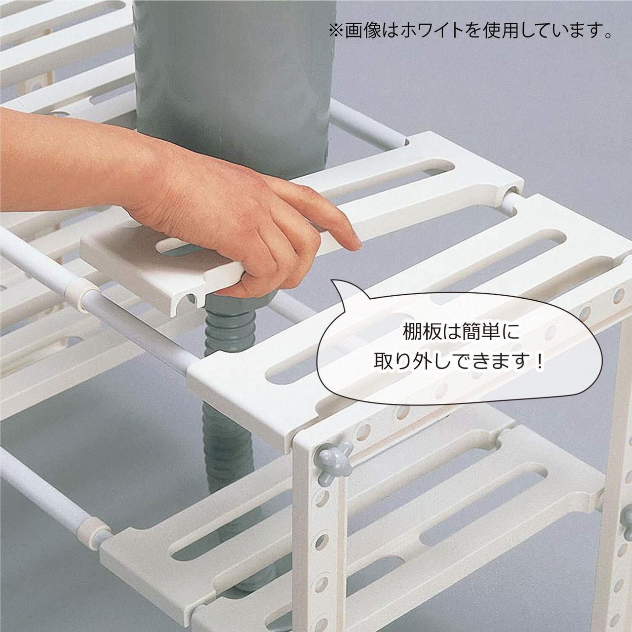 棚板は取り外しが可能になっているので、シンク下の排水トラップを避けて棚が作れます。