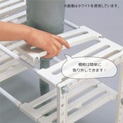 材質 / フレーム:スチロール樹脂、棚板・メネジ:ポリプロピレン、パイプ:スチール(エポキシ焼付塗装)(樹脂部:ABS樹脂)