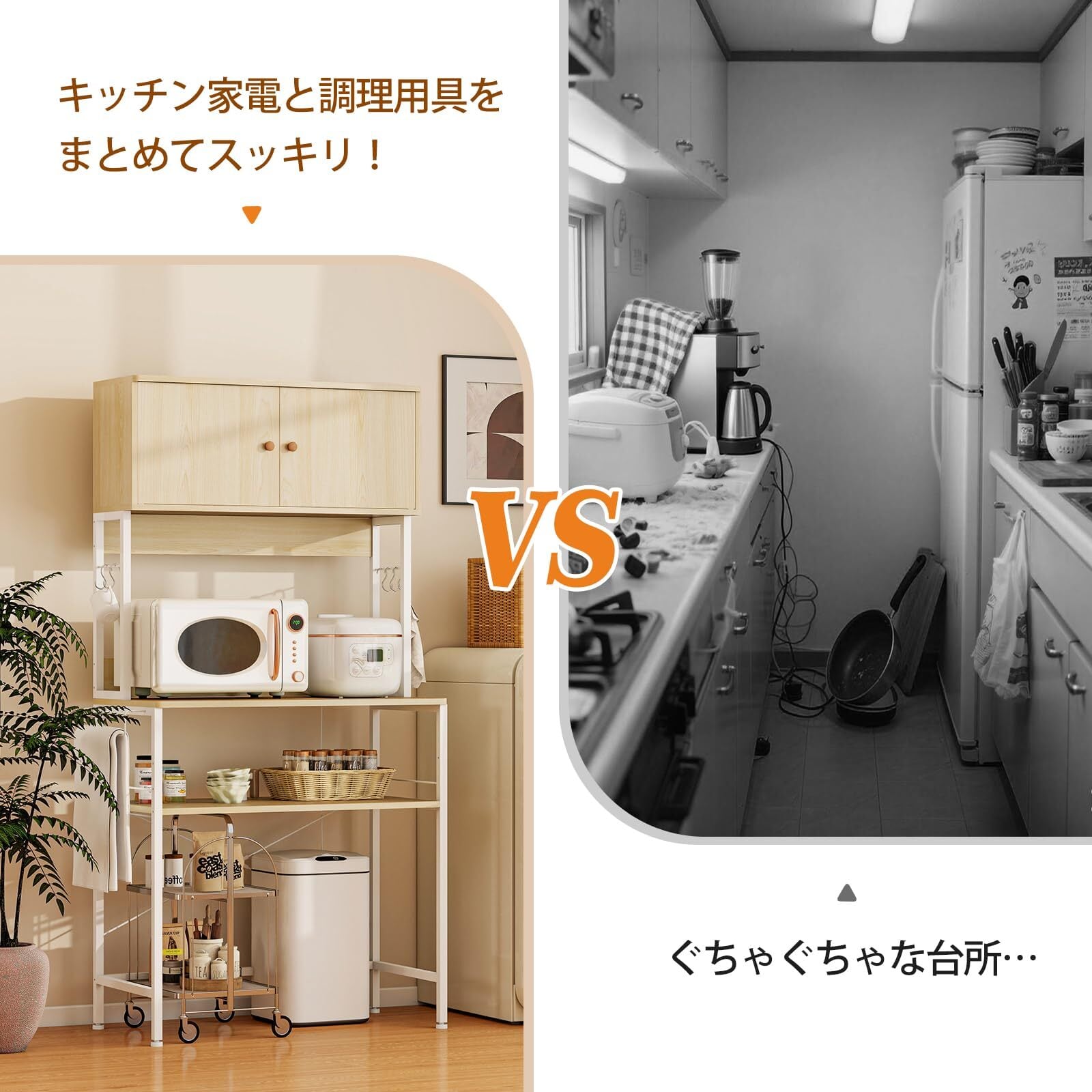 LYNCOHOME 幅80 ワイドレンジラック 計4口 コンセント付き USBポート付き キッチン上部収納棚 レンジ台 レンジボード 食器棚 キッチンラック キッチン収納 大型レンジ対応(ナチュラル オーク アイボリー)
