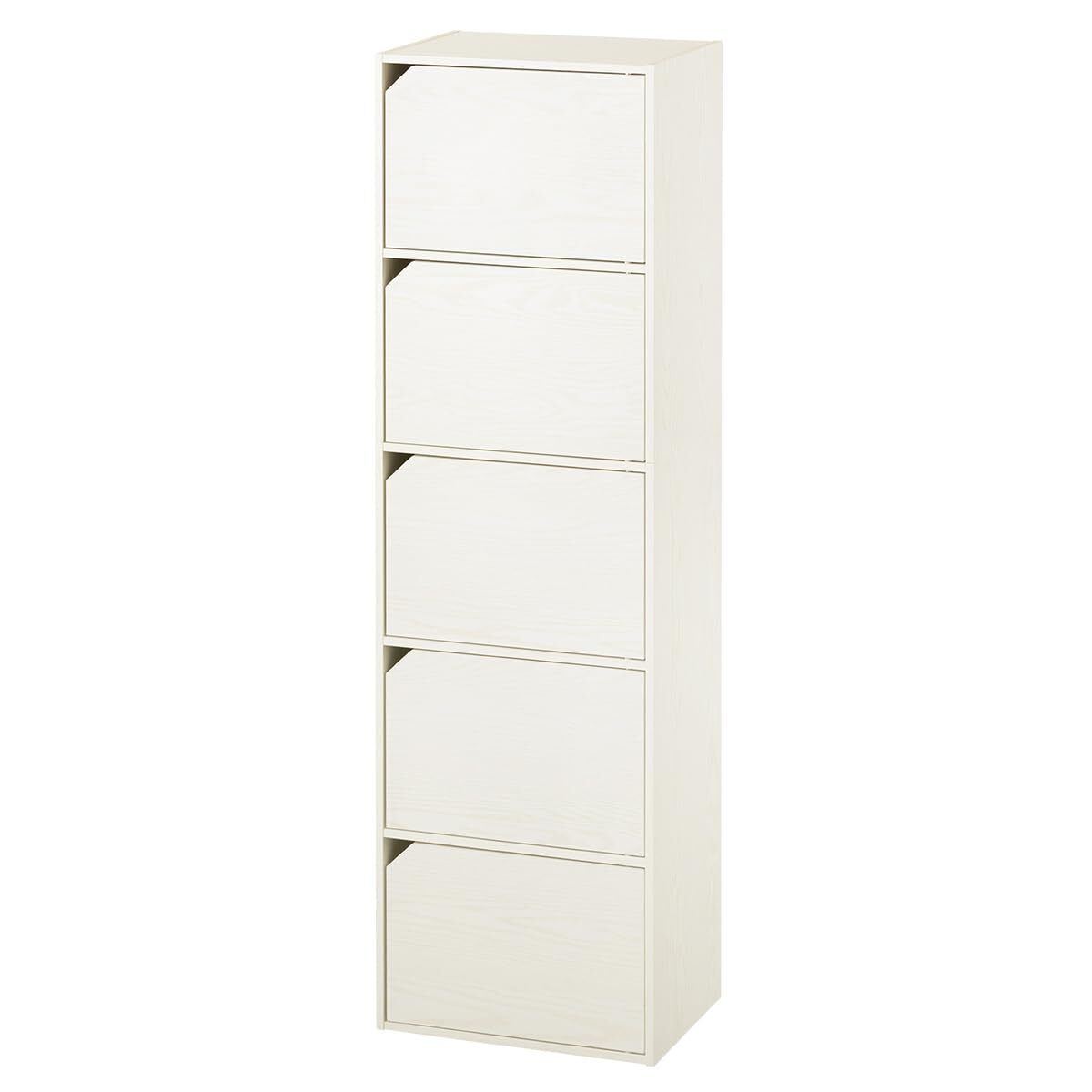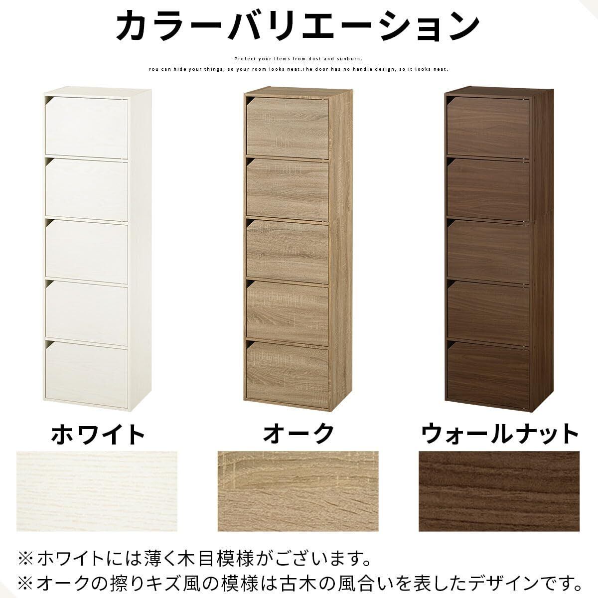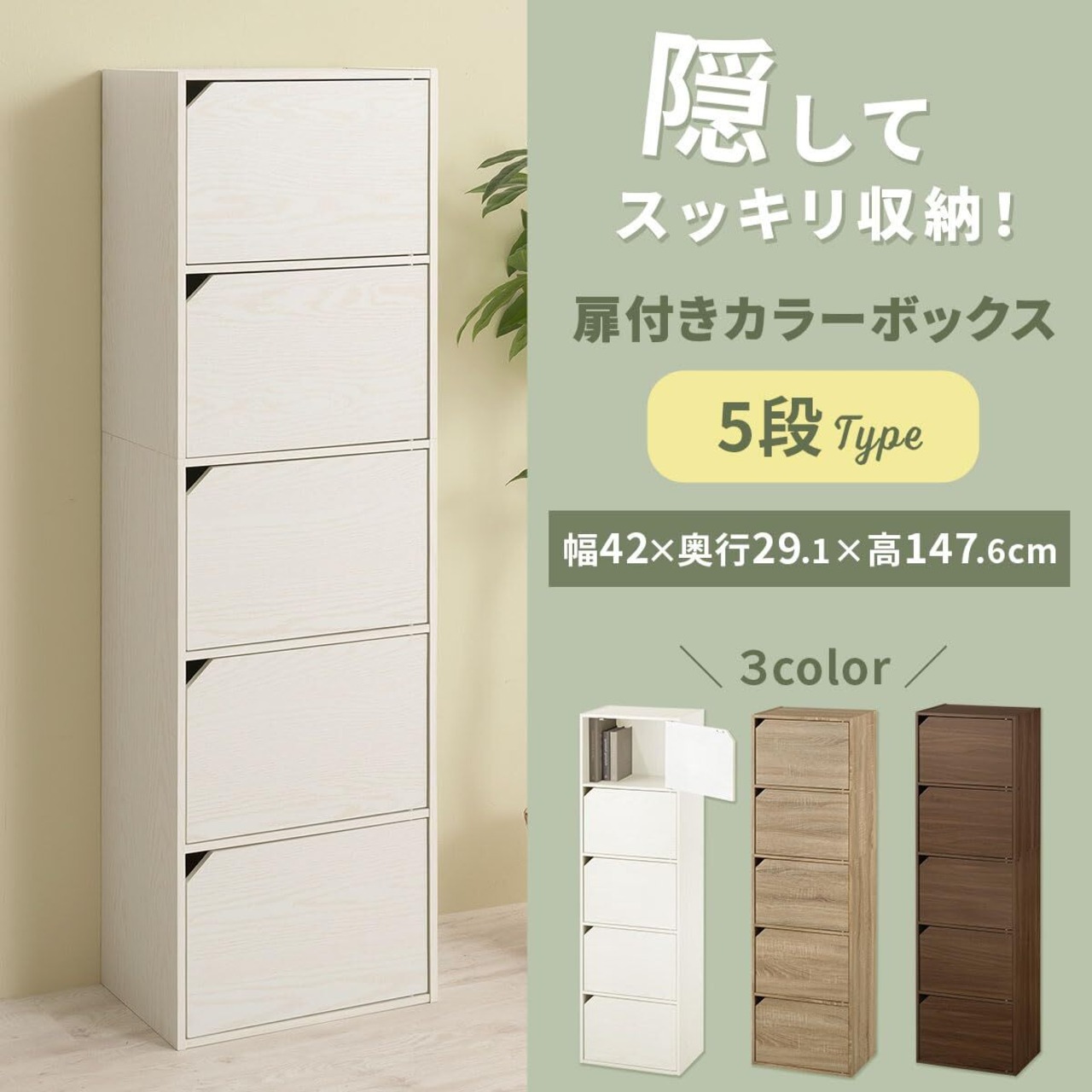ぼん家具 カラーボックス 扉付き 5段 幅42×奥行29.1×高さ147.6cm 収納ボックス 本棚 収納棚 木目調 マルチラック ホワイト