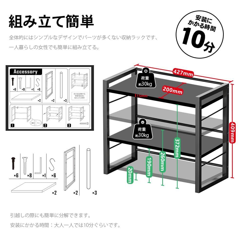 【組み立て簡単】全体的にはシンプルなデザインでパーツが多くない収納ラックです、一人暮らしの女性でも簡単に組み立てる。引越しの際にも簡単に分解できます。安装にかかる時間:大人一人では20分ぐらいです。