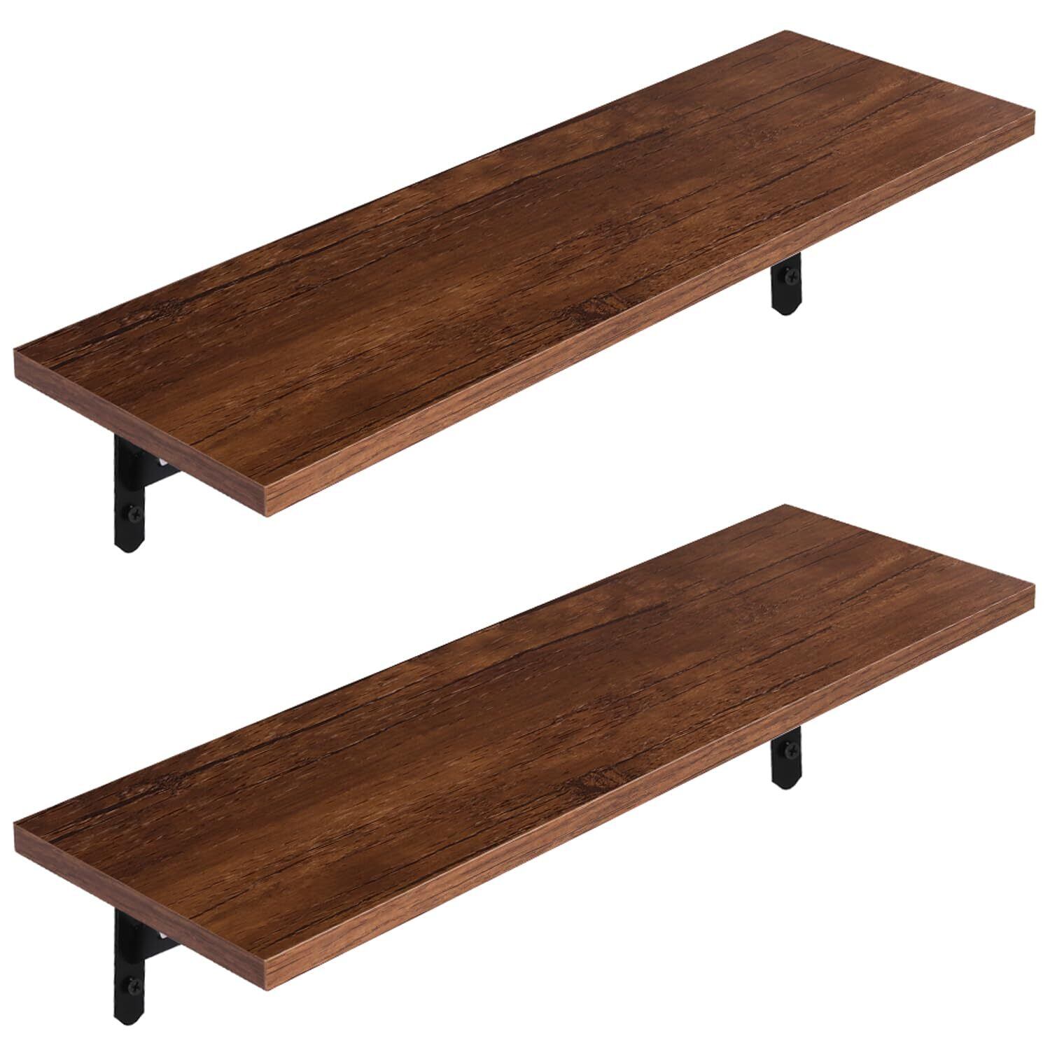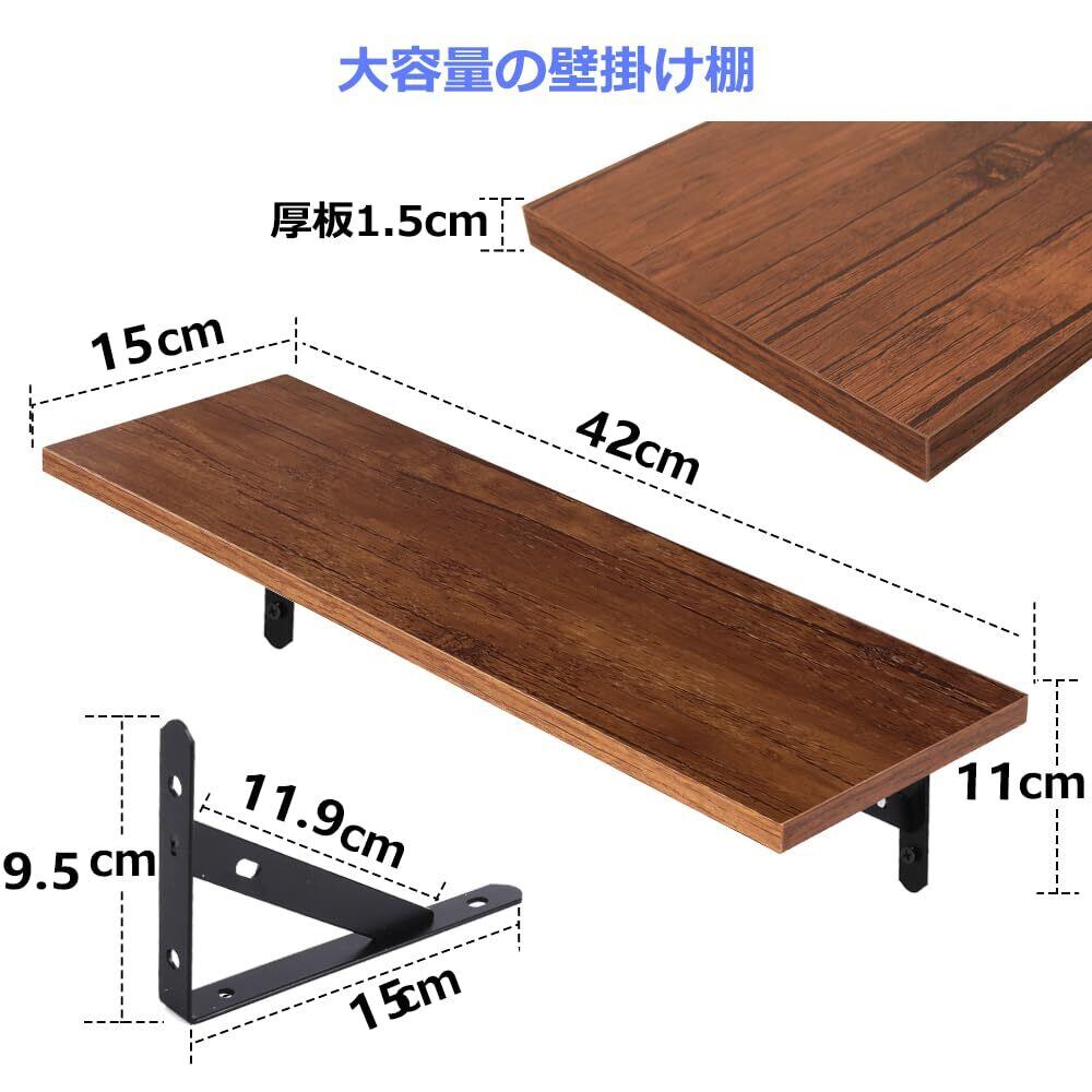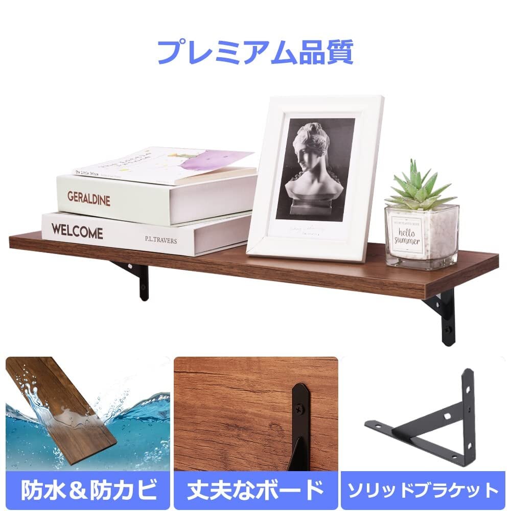 SIUSA ウォールシェルフ 壁掛け棚 2個セット 防水 頑丈 壁 棚 ウォールラック おしゃれ 北欧 42cm 防カビ 防虫 木製 取り付け簡単 日本語取扱説明書付き ブラウン