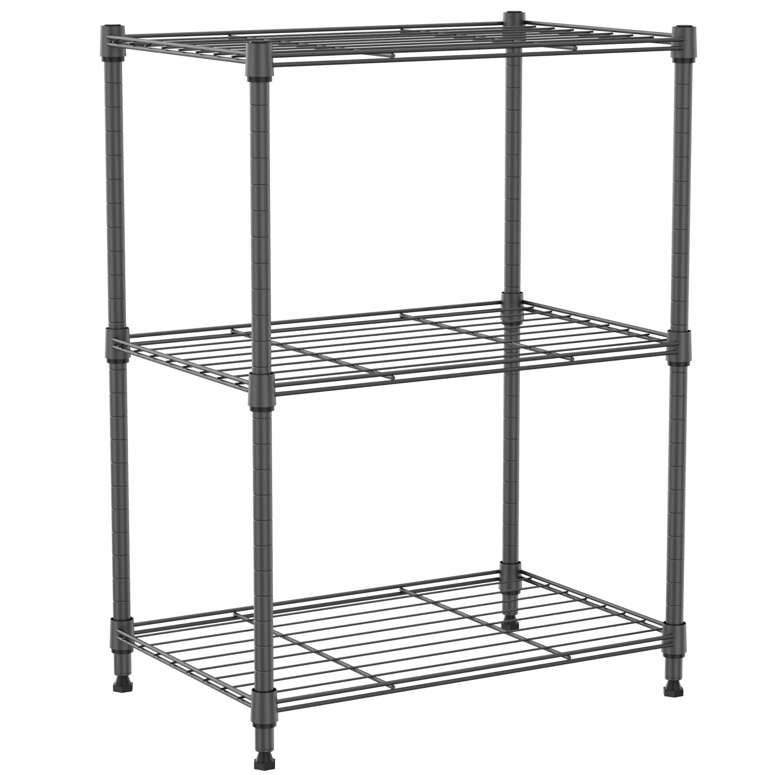 多用途&省スペース:管径15.9mmの3段ミニメタルラックのサイズ:幅45cm×奥行30cm×高さ67.1cm。脚部のアジャスターは高さを調整できます。(工具不要)。パイプ棚の高さは調整可能。スチールパイプの中央にクリップが取り付けられており、家の空間デザインに応じて狭いスペースでもメッシュの高さを自由に調整して伸縮式パイプラックを形成できます。キッチン、リビング、寝室、クローゼット、バスルーム、ガレージ、地下室、貯蔵室、倉庫、屋外倉庫などの場所に適しています。家庭用品、工具、本など、スペースを取るものは何でも置くことができます。