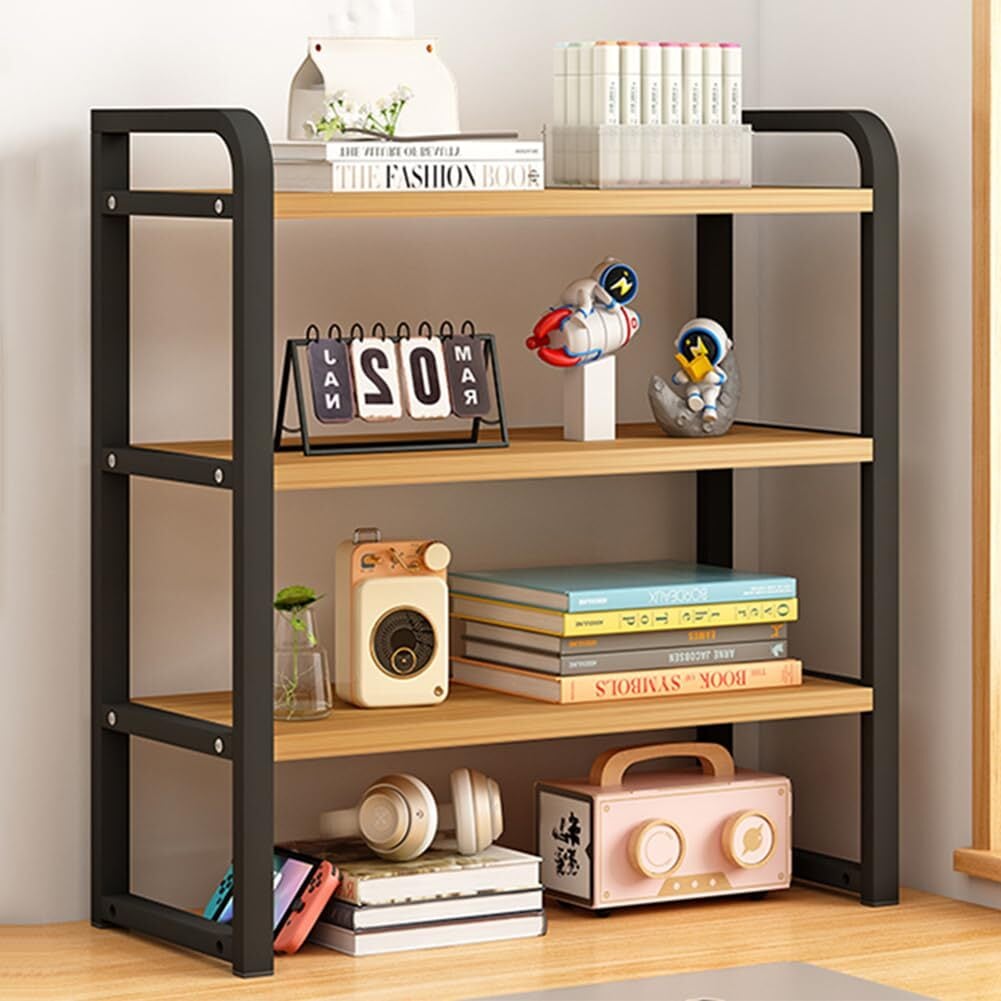 PFLife デスク上収納ラック 高さ調整 卓上棚 一段/二段/三段 卓上本棚 デスク上棚 デスク上ラック アレンジ自由 デスクシェルフ デスク上置棚 奥行20cm 小物入れ 白 黒 簡単組立 スペース活用 おしゃれ (タイプB-ブラックフレーム, 3段-幅50cm)