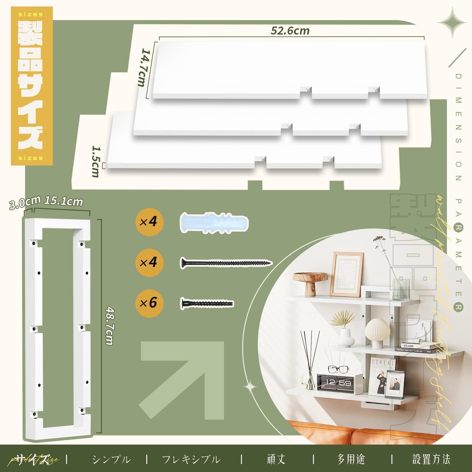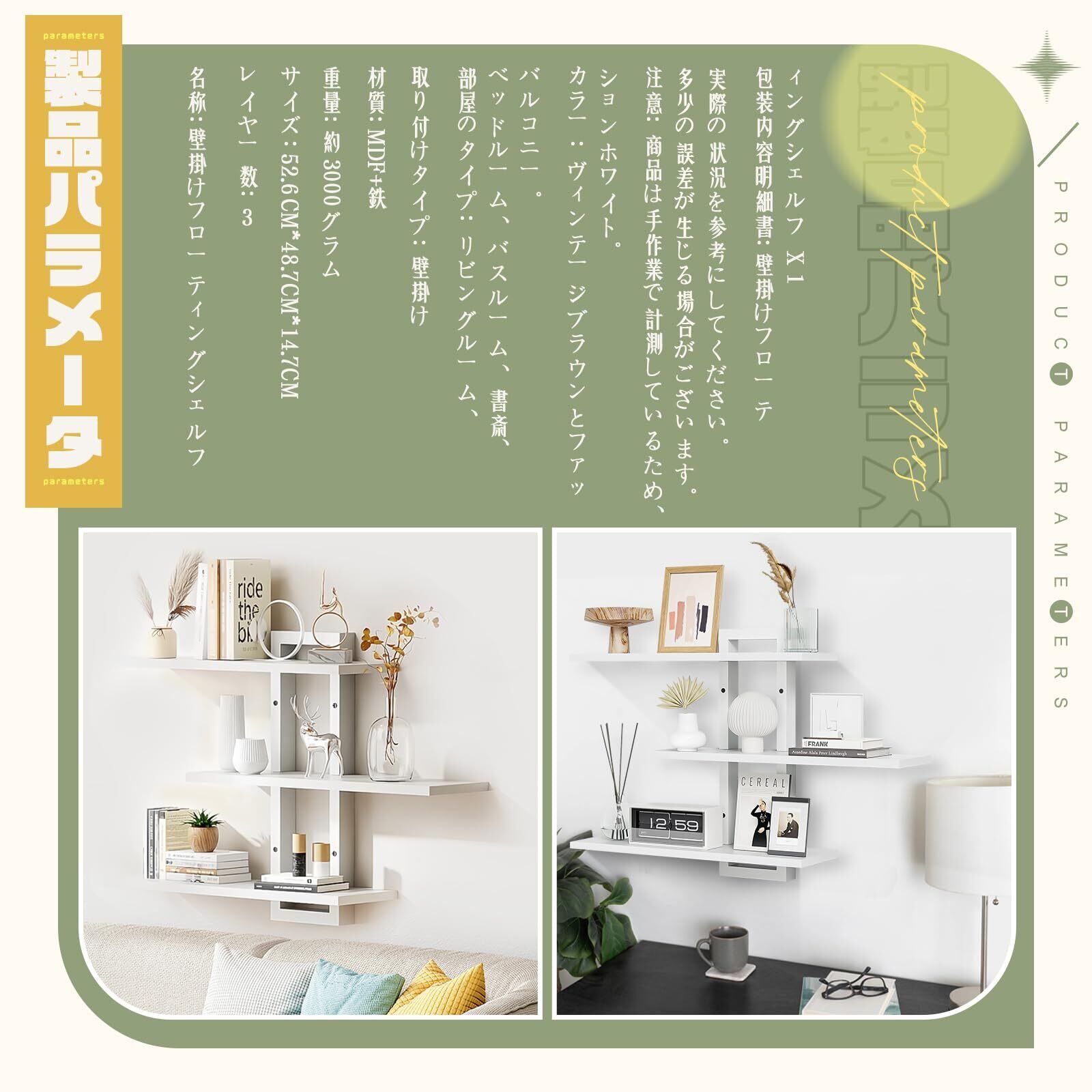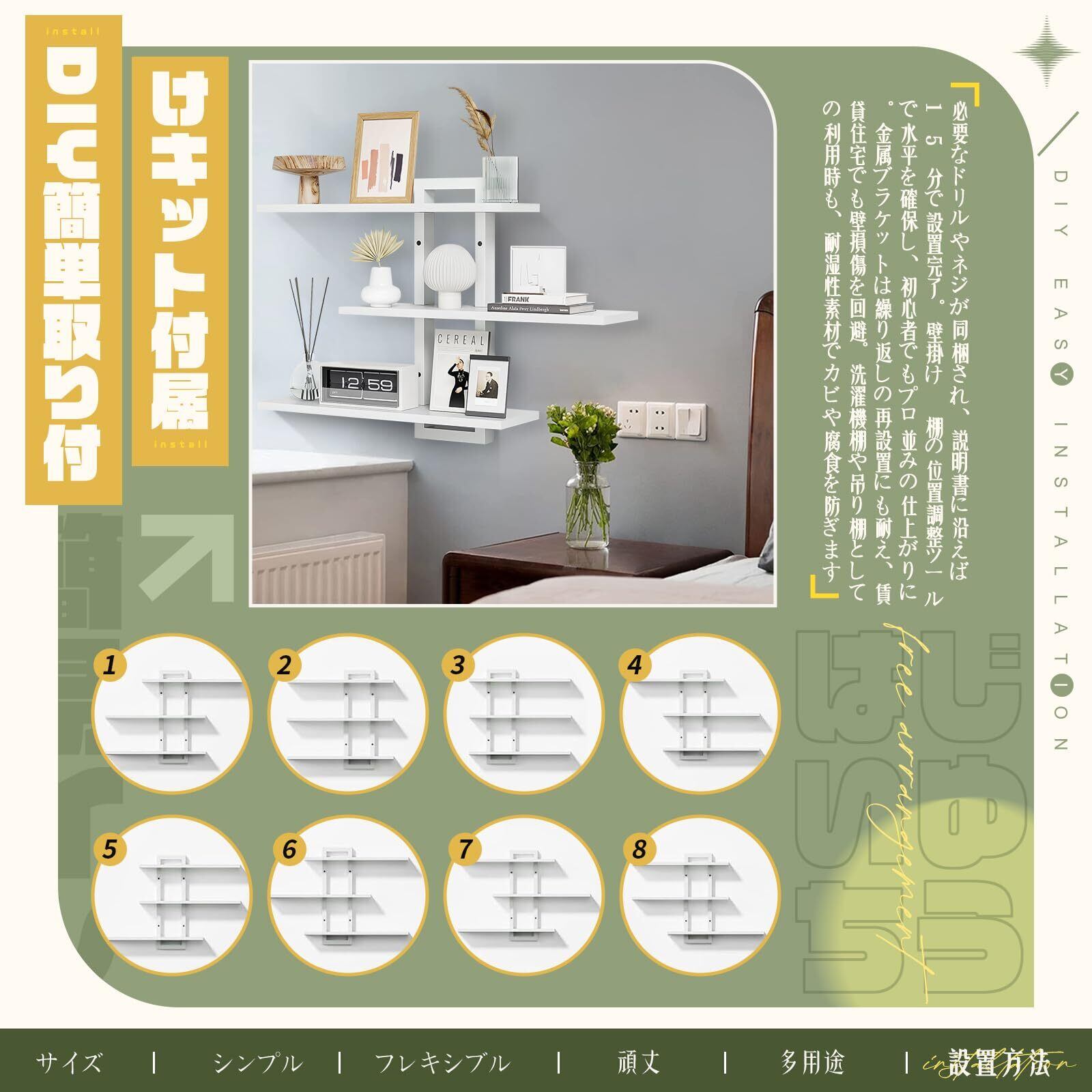 【シンプル機能美】:木製のフローティングシェルフは、スリムなデザインと高密度メラミン板を採用し、耐摩耗・耐熱・防水性に優れています。ホワイトはモダンなインテリアに、ブラウンはレトロな雰囲気にマッチ。壁掛け棚 3段の多段設計で、本・植物・フォトフレーム・バスルーム小物まで整理可能。ほぞ穴構造と金属ブラケットで安定性を確保し、ボードは必要に応じて様々な形状にカスタマイズでき、見た目を維持し、位置を変えても壁の損傷を回避できます。リビング・寝室・トイレ・バルコニーなど、あらゆる部屋の壁 収納 問題を解決します。