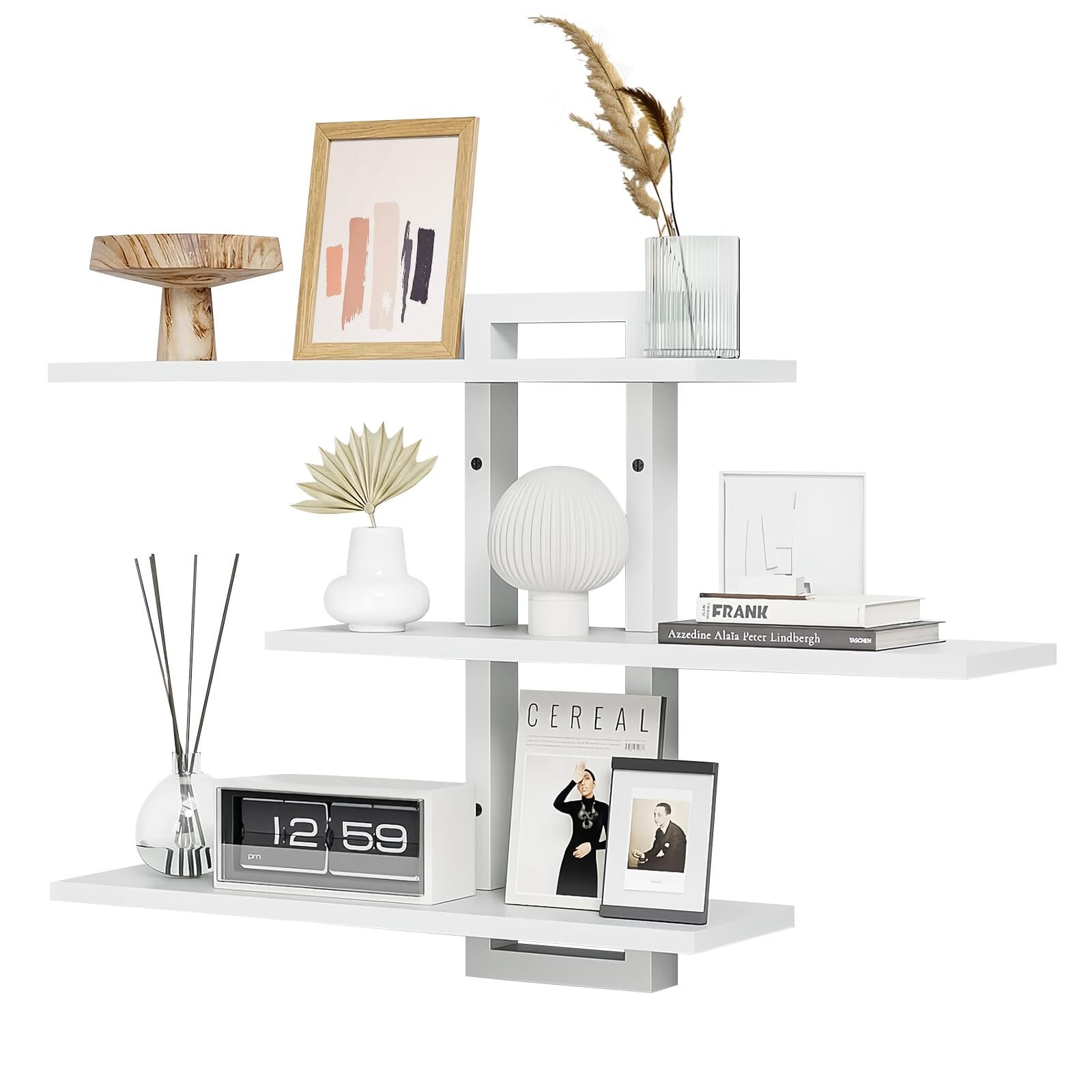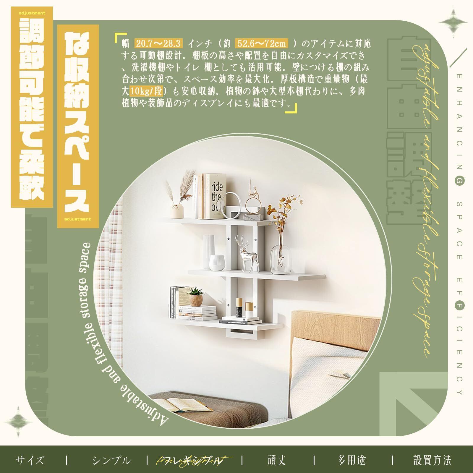 壁掛け棚 木製壁掛けラック 飾り棚 家庭用リビングルーム壁掛けラック かざり棚 おしゃれ パンチング ワンライン本棚 取り付け棚 トイレ壁付け収納 植物や本や写真用の装飾ウォールシェルフ(ホワイト3層)