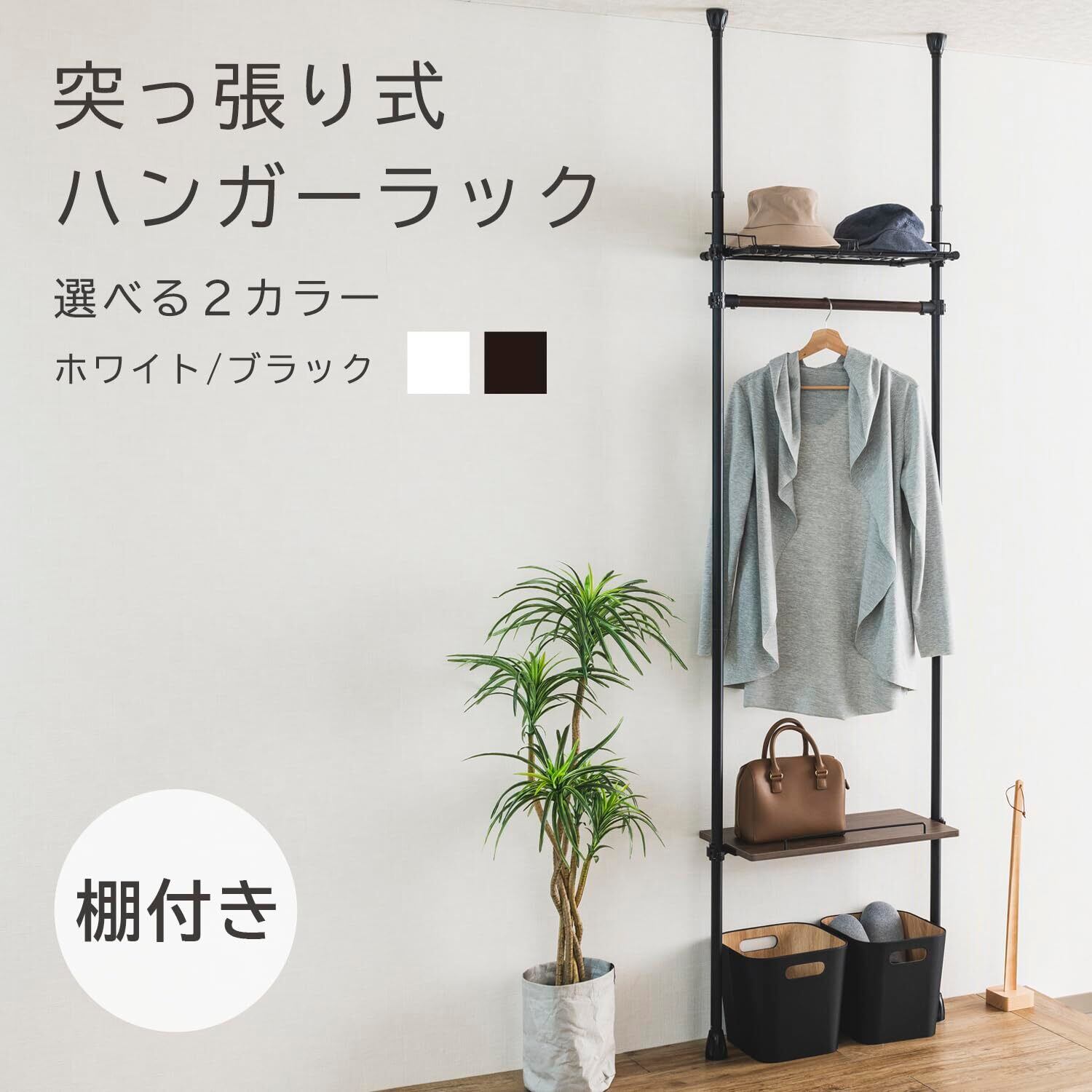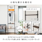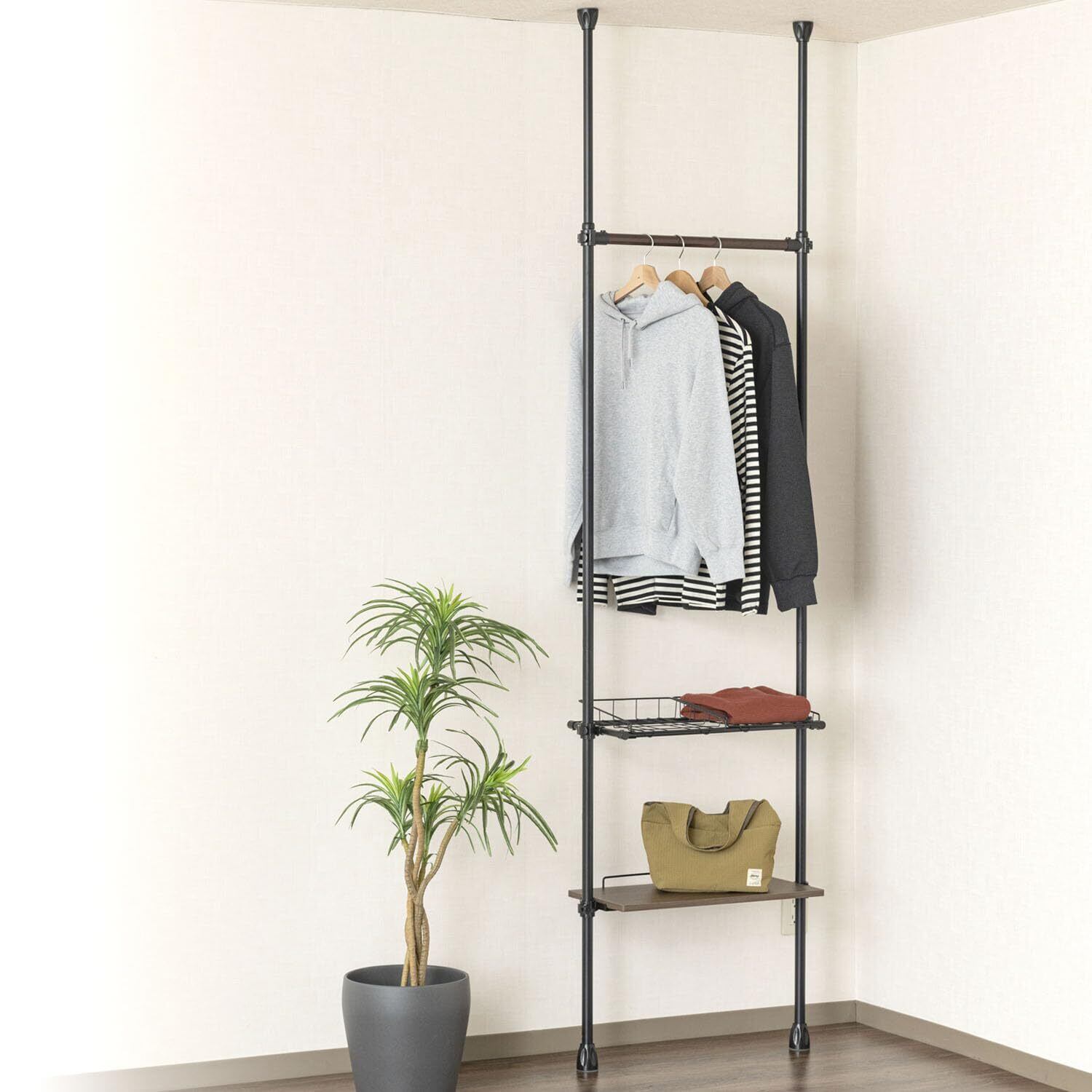 洋服も小物も収納したい方におすすめ!【棚付き突っ張り式ハンガーラック】