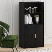 フリノ(Furinno) 収納キャビネット Pasirシリーズ オープン棚2段/扉付棚2段 幅59.9×奥行30×高さ121.4cm ブラックオーク 【日本正規輸入品】 20125BOK