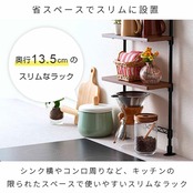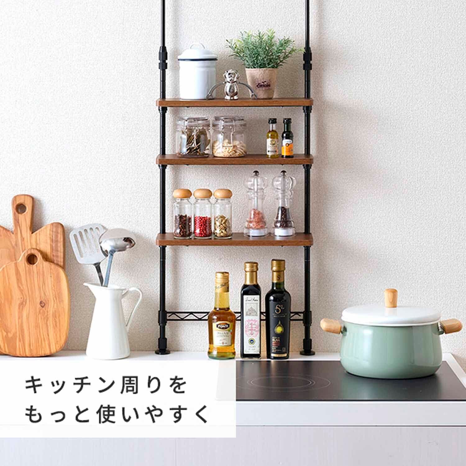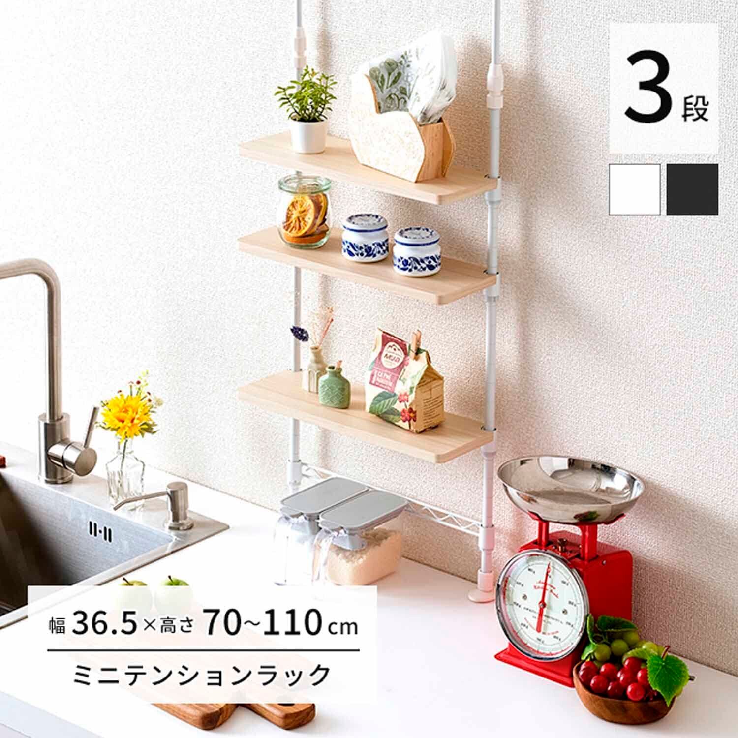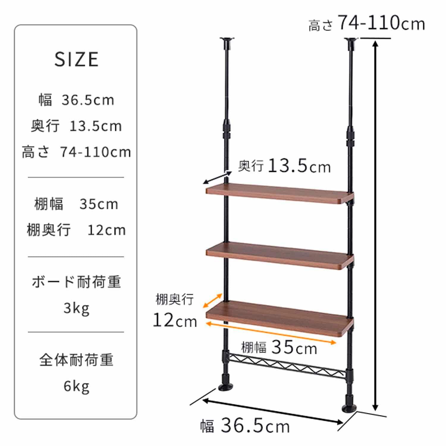 ドウシシャ 3段 突っ張り 調味料ラック スパイスラック 卓上ミニラック 黒 ブラック 幅35x奥行13x高さ75~110cm CM35TP-3BK 木製棚 棚位置変更可 棚耐荷重3kg 防錆加工 サビに強い 水回りOK キッチンラック シンク上 コンロ横