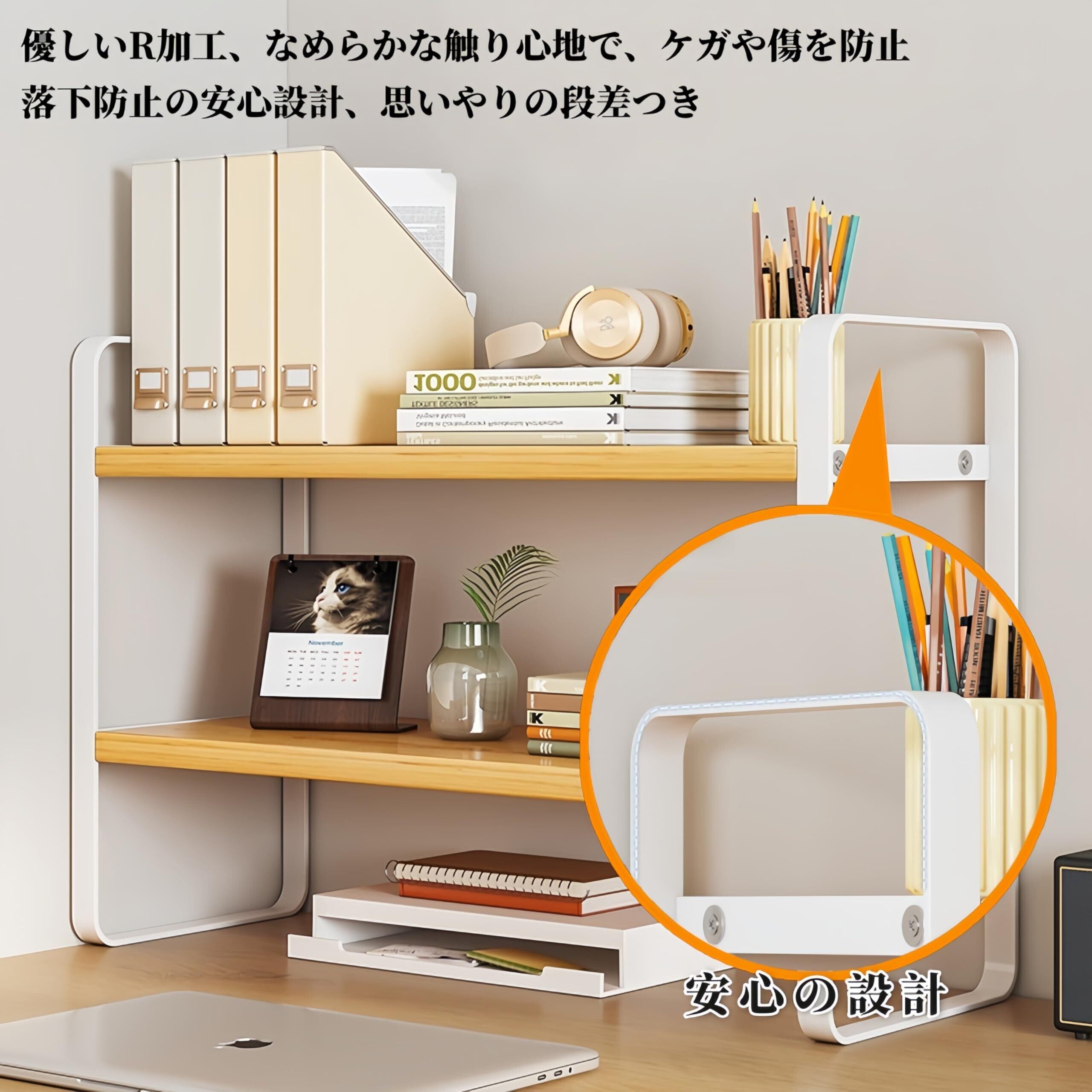 コンパクト設計 & 高品質素材:卓上棚 サイズ:幅40×奥行20×高さ36cmの スリム収納ラック。 高密度化粧繊維板+ 防錆スチールフレーム 採用。表面 防水コーティング 処理で、コーヒーこぼれも瞬時拭き取り可能。(机上収納に最適)
