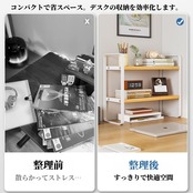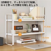 全空間対応マルチユース:文房具/化粧品/調味料/PC周辺機器を 階層別収納 可能。 リビング・洗面所・キッチン でも活用できる 多機能デスクラック。(※卓上棚として玄関収納にも対応)