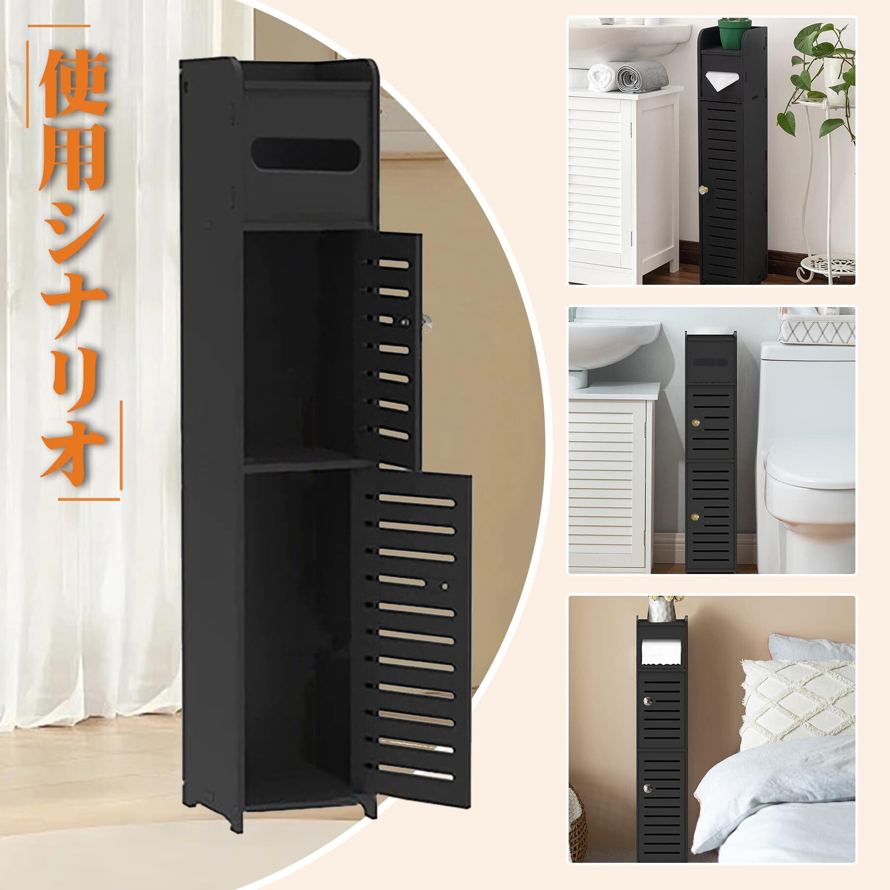 CZEAR トイレ 収納 隙間収納 スリム 収納 防水 防湿 組立簡単 玄関/洗面所/寝室/書斎 省スペース バスルーム収納棚 (ブラック, 15*15*80cm(2つのドア))