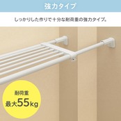 【取り付け簡単】取り付け時に位置を固定できるアダプター付きで、1人でも楽に取り付けできる。1.取り付け位置を決め、アダプターを壁に固定。(付属の台紙を使い、高さを合わせる。)2.伸縮しない側の圧着板をアダプターに乗せてパイプを伸縮させ、もう片方の圧着板を壁面に当てる。3.ロックネジを締めてパイプを固定し、アジャスターを回してパイプを突っ張る。4.アダプターを外して設置完了!(※壁紙に両面テープが残っている場合は、水で濡らすと簡単に剥がれます。)