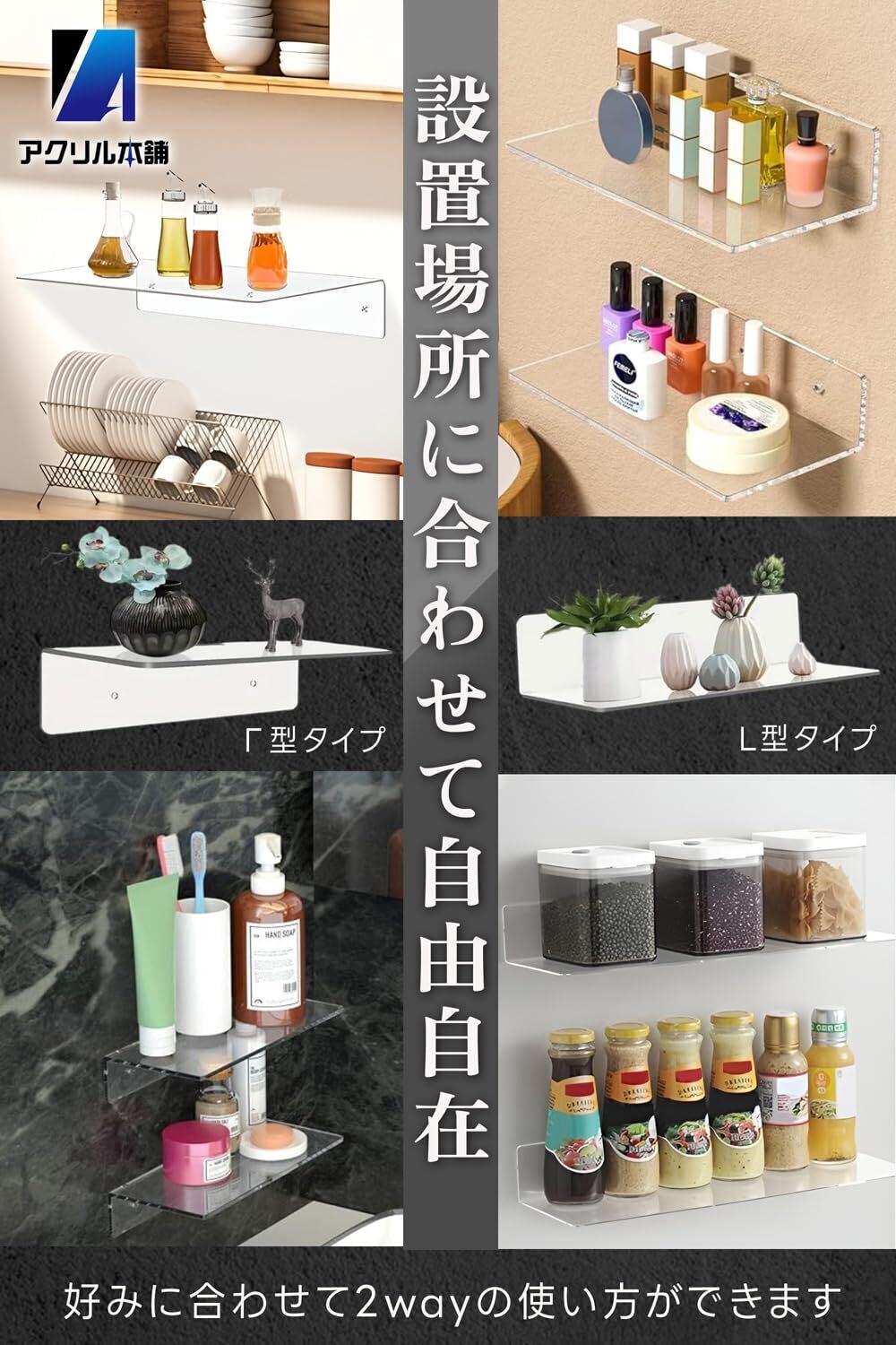 アクリル本舗 ウォールシェルフ 2セット 壁掛け棚 ウォールラック 壁掛けラック 棚 ラック 壁