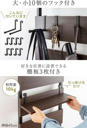 引っ掛け 収納 に便利なフックは10個(大×2個、小×8個)付属しています。フックはパネルの裏側からも設置可能です。