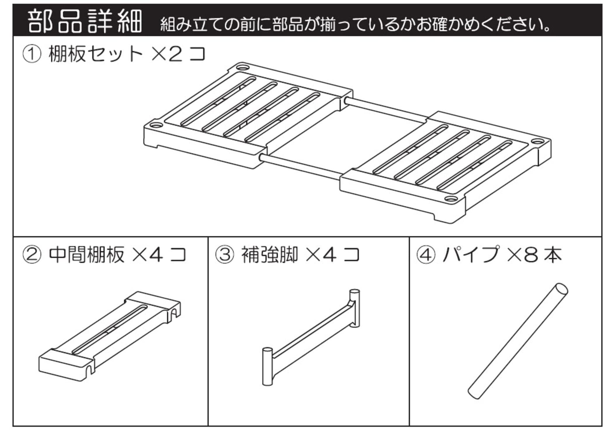 素材・材質:パイプ/スチール(粉体塗装)、棚板・脚/PP樹脂