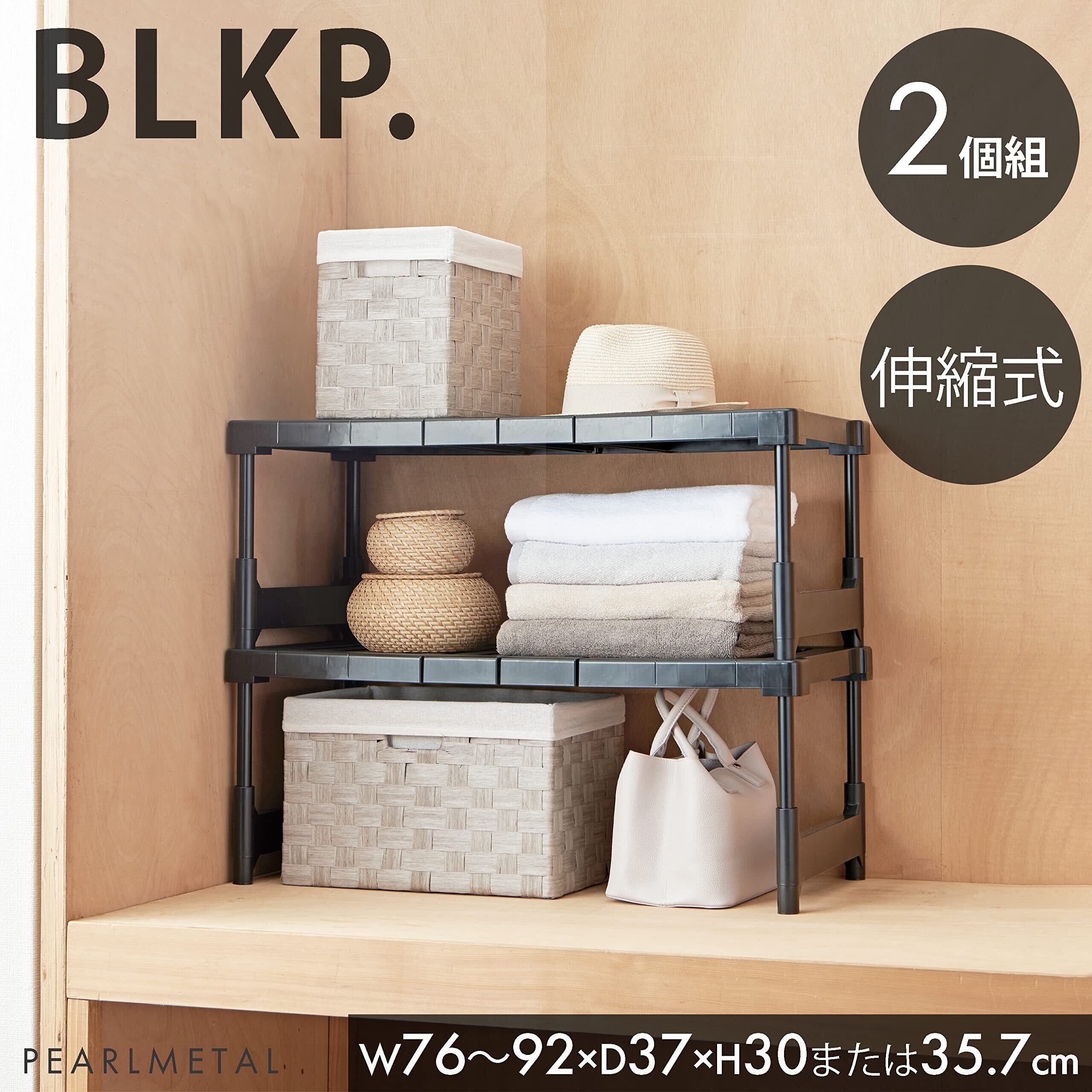 【BLKP】 パール金属(PEARL METAL) 収納 棚 ラック 整理棚 2枚組 伸縮 押入れ すのこ 幅76~92 × 奥行37 × 高さ30・35.7cm BLKP ブラック N-7878