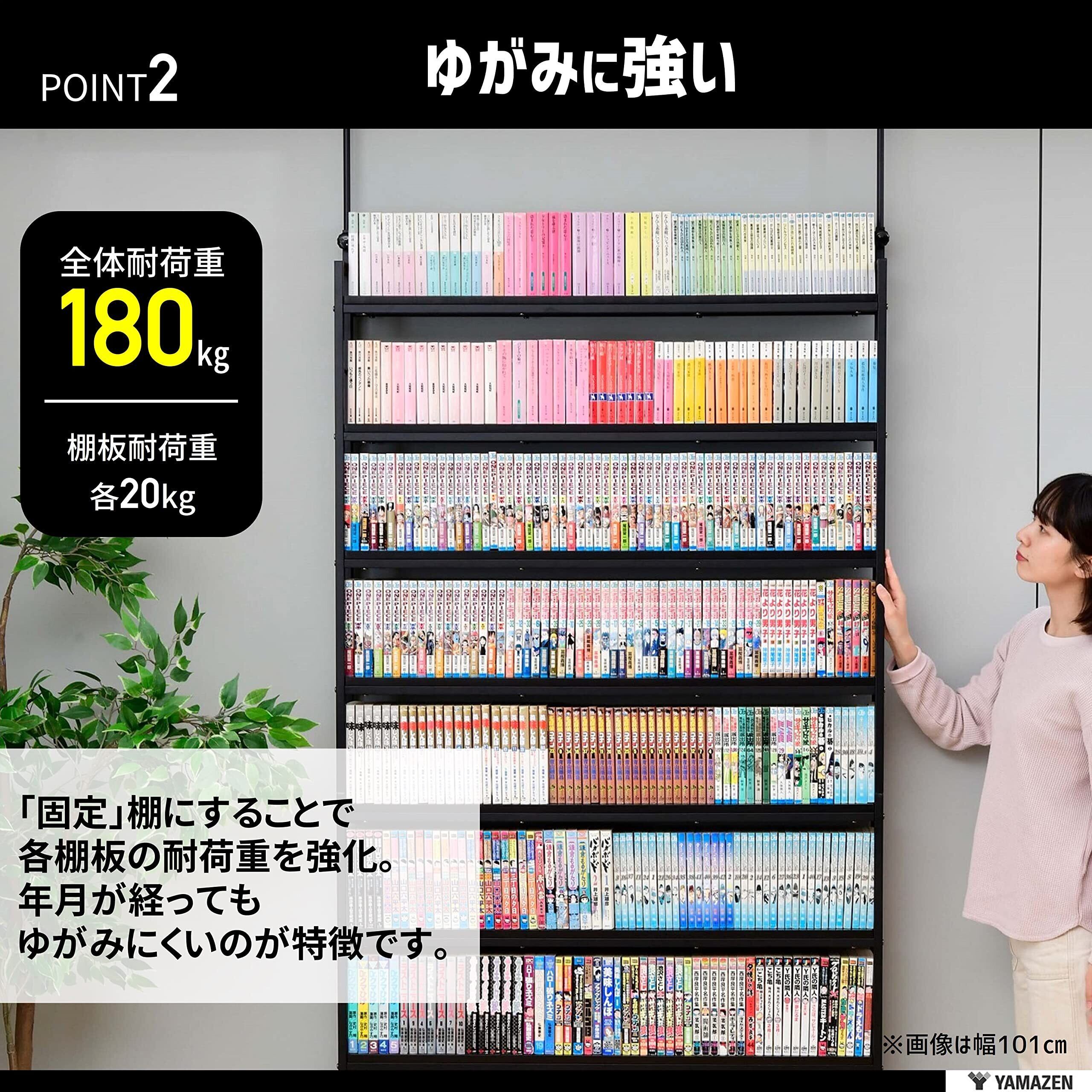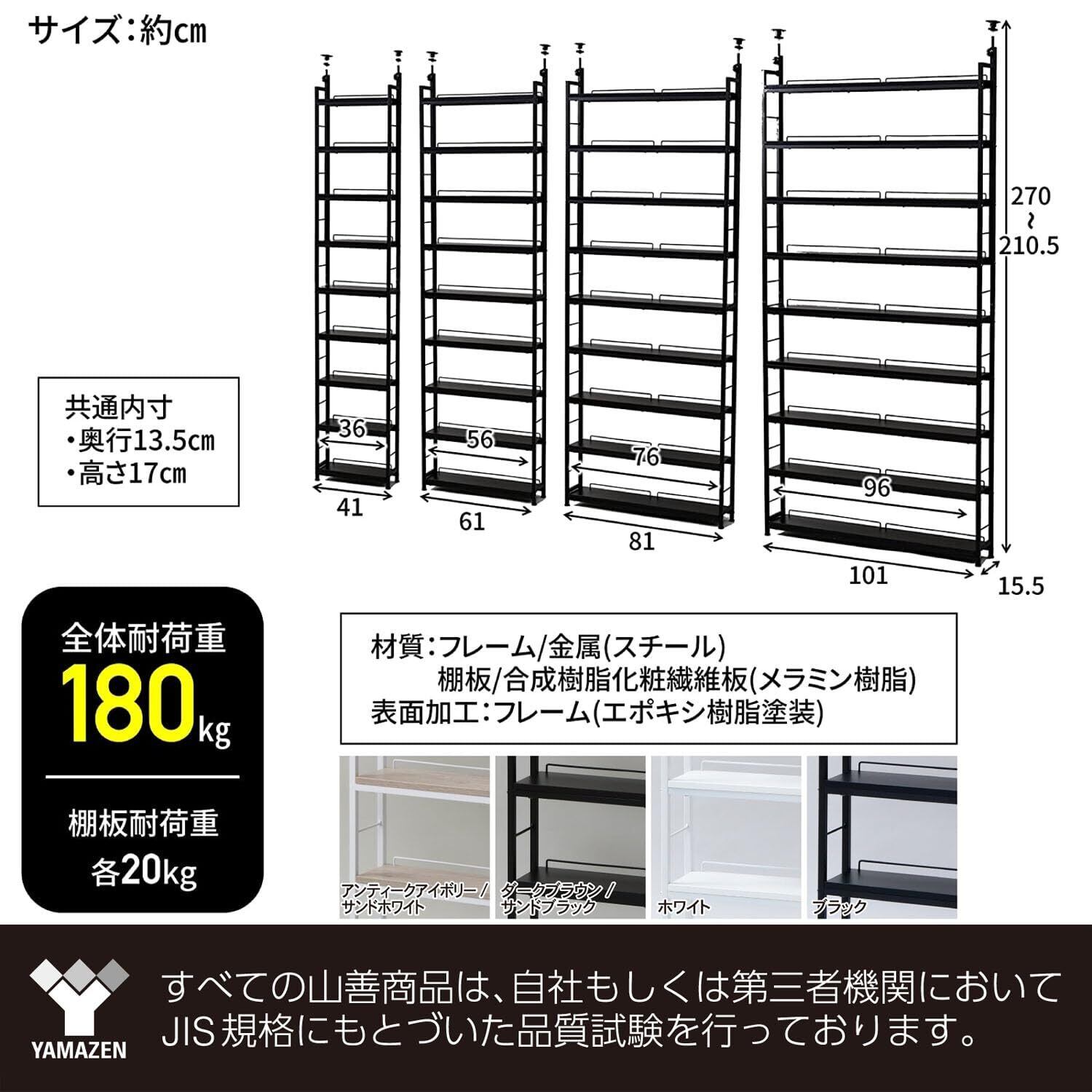 山善(YAMAZEN) 本棚 (突っ張り) 大容量 スリム 全体耐荷重180㎏ 幅41×奥行15.5×高さ210.5-270㎝ 壁面収納 ラック 組立品 アンティークアイボリー RTRS-4015(AIV/SWH)