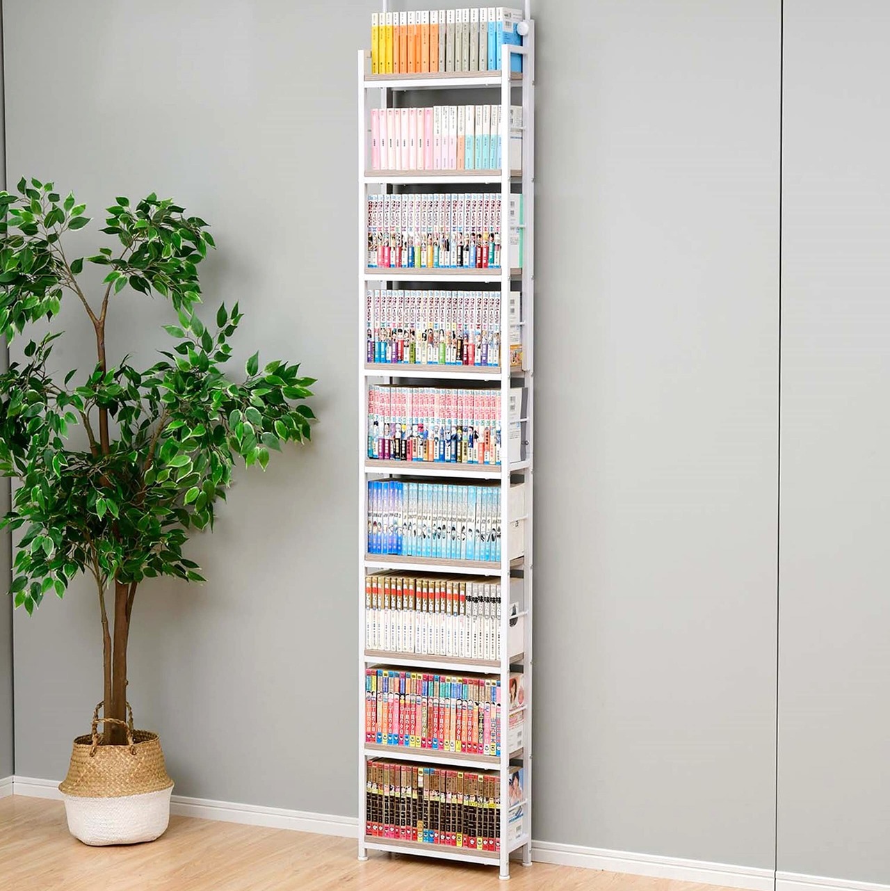 【スリムでも大容量】奥行15.5㎝なので狭いお部屋でも圧迫感なく使え、なおかつ単行本を最大約200冊収納できる大容量のラック