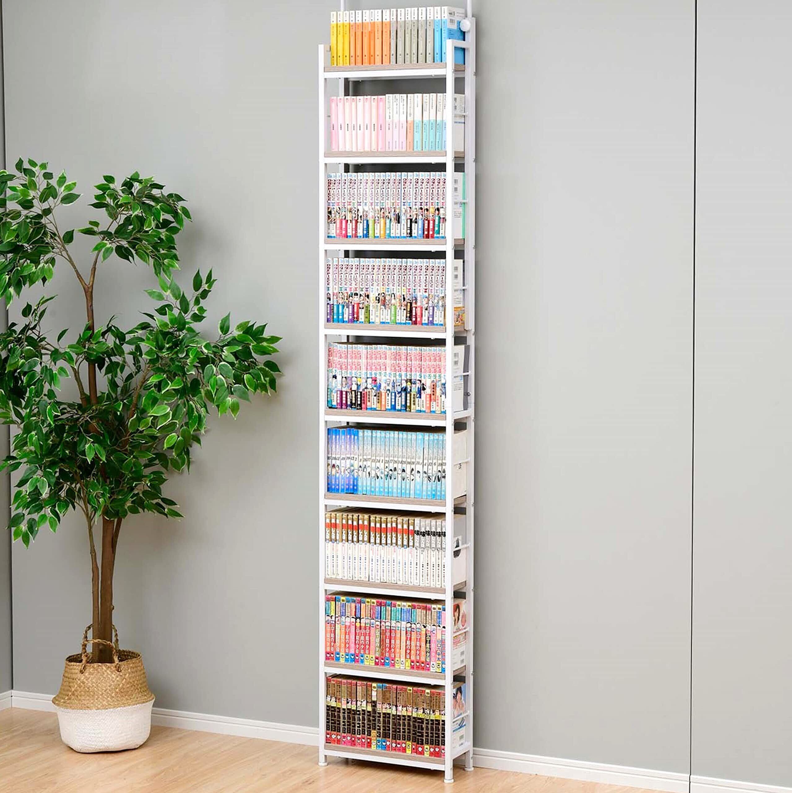 【スリムでも大容量】奥行15.5cmなので狭いお部屋でも圧迫感なく使え、なおかつ単行本を最大約200冊収納できる大容量のラック