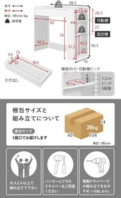 【材質】主材:プリント紙化粧パーティクルボード/天板:合成樹脂化粧パーティクルボード(ポリ塩化ビニル)/落下防止ワイヤー:スチール