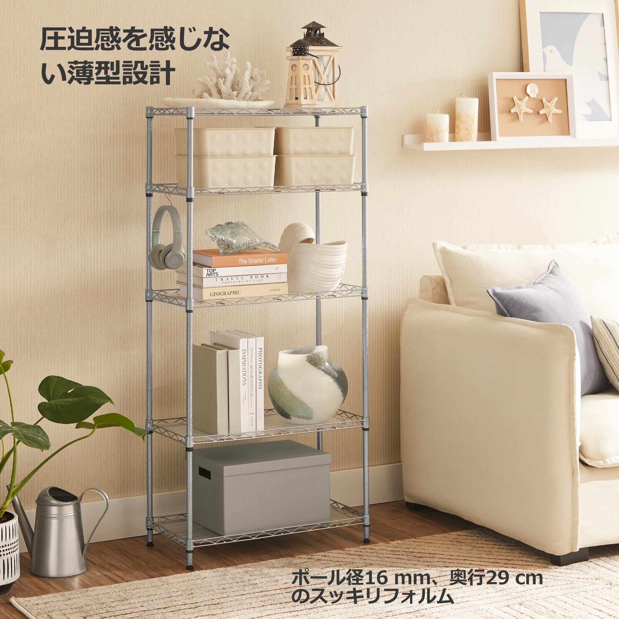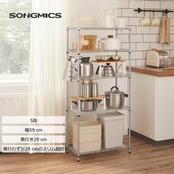 SONGMICS ラック幅60CM スチールラック五段キッチン収納省スペース 隙間収納 おしゃれ スチールシェルフ シェルフ 棚 メタル 炊飯器 オープンラック カラーラック キッチン収納LGR065E01V1