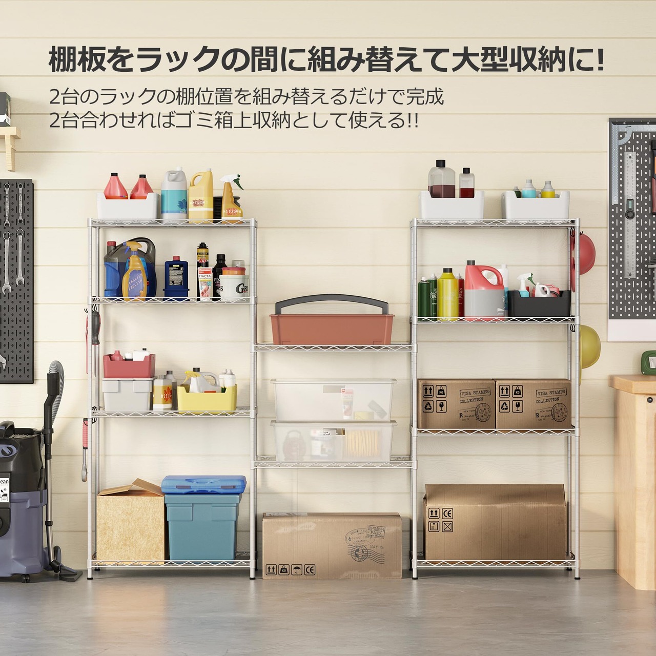 【高耐荷重設計】このスチールラック五段は高耐荷重設計で、重たい物もしっかりと支えます。安心して多くの物を収納できる、頼れる収納ラックです。