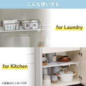 【使い方いろいろ】[ランドリーに]洗濯機上などのデッドスペースを収納に。洗剤やタオルなども乗せられる。[キッチンに]小物が多く乱雑になりがちな台所も、棚があればスッキリ。
