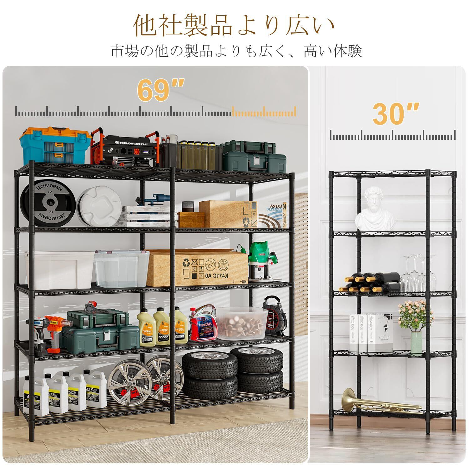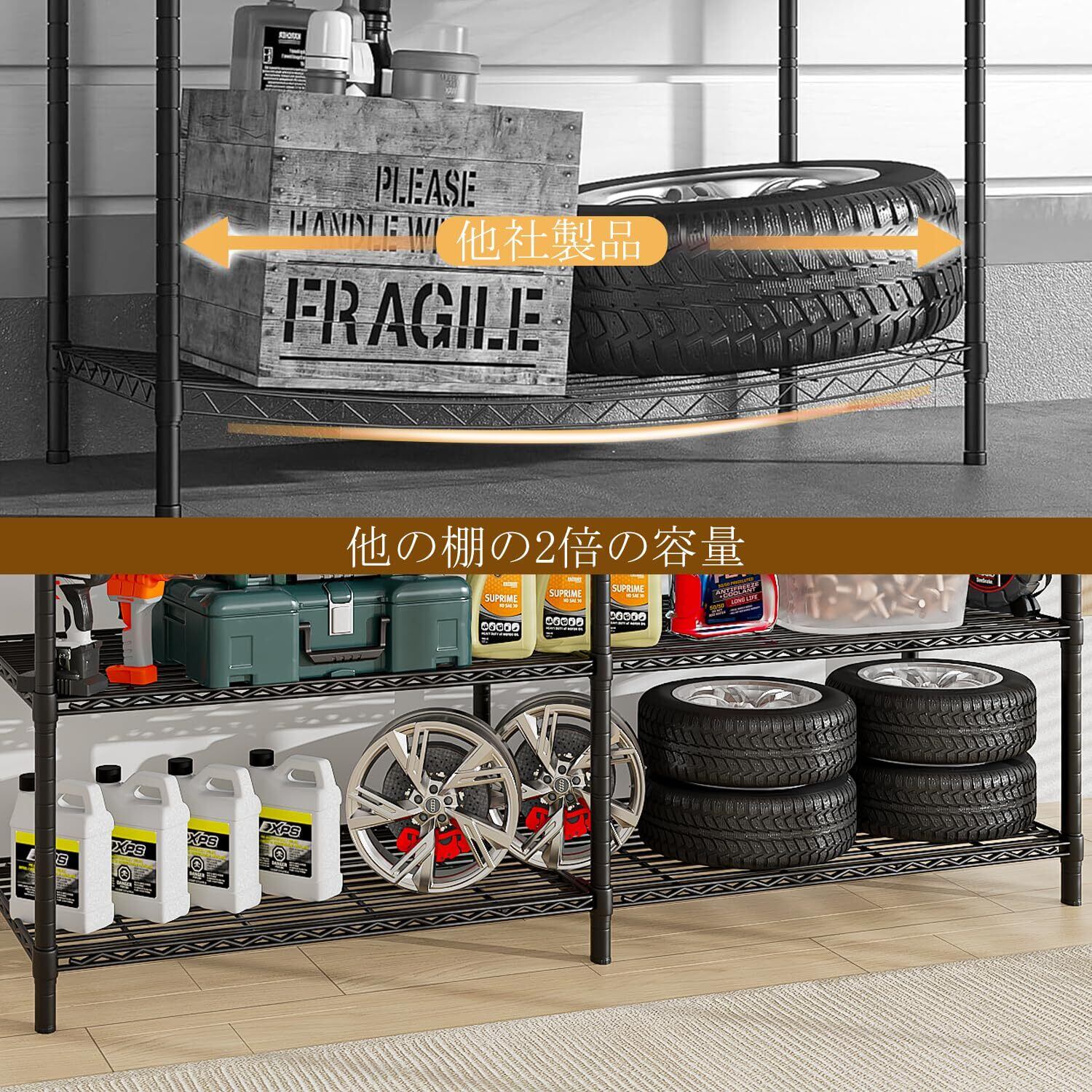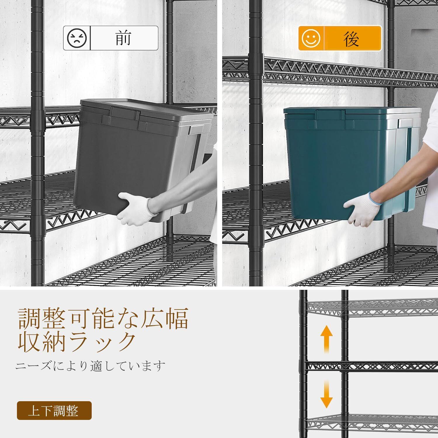 全体耐荷重500kg-この金属製の収納棚は、頑丈なスチールワイヤーで作られています。 棚板1枚あたり50kgまでの重量に耐えられます。一般的な家庭用の木製ラックの場合は20~30kg程度なので、驚異的な強度です。業務用途に幅広くご愛顧いただいています。
