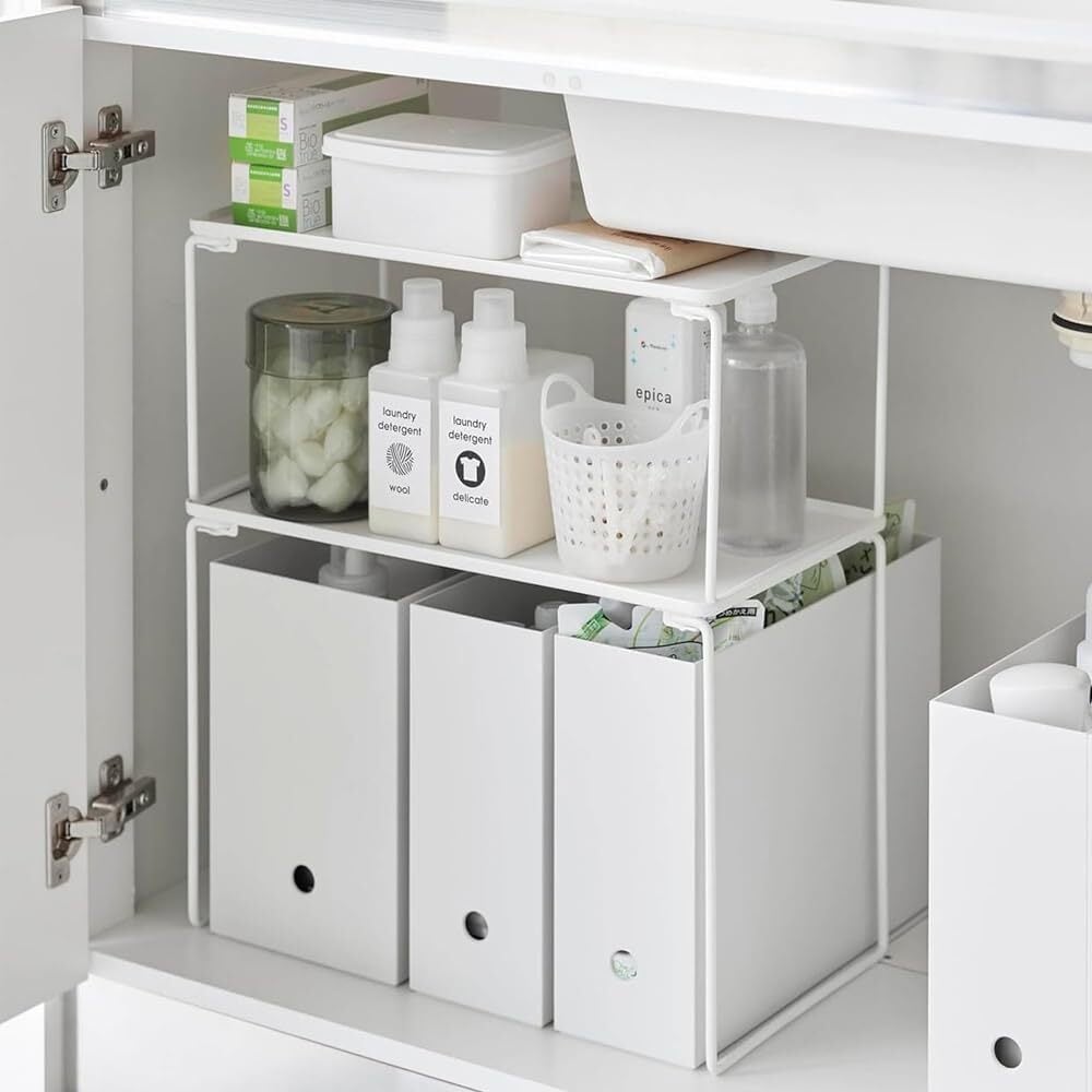 キッチンや洗面所のシンク下の空いているスペースを有効活用できる収納ラック。