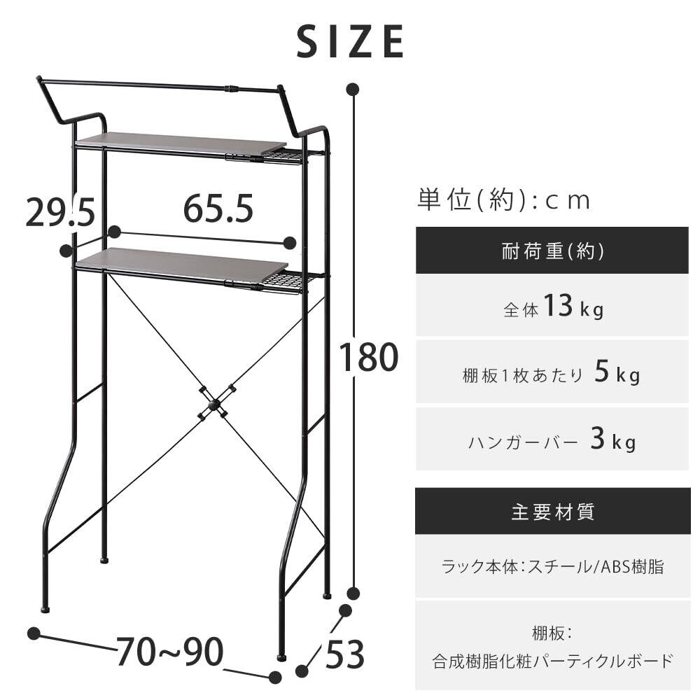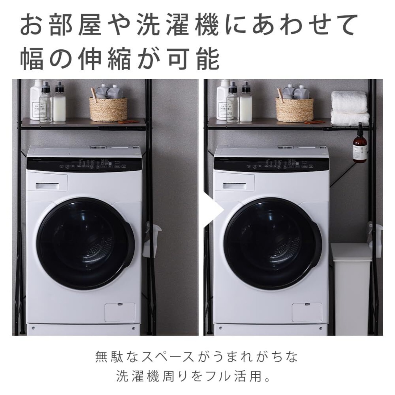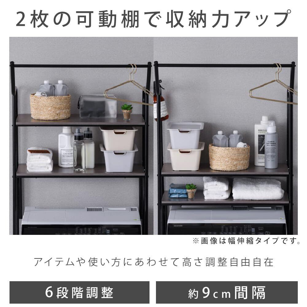 アイリスオーヤマ ランドリーラック 洗濯機ラック 幅伸縮タイプ(70~90cm) ブラック/ハンガーバー付き デッドスペースを賢くおしゃれに活用 収納棚 隙間収納 ランドリールームをより素敵に メッシュ棚で伸ばしたときの落下防止 クロスバーでグラつき防止 幅約70~90×奥行約53×高さ約180 HSLR-EX895
