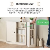 Point 1. 可動棚で賢く収納 メインラックもサイドラックも中板はすべて可動棚。ラックの真ん中に仕切りがないので片扉で奥まで収納可能。 収納したいものに合わせて無駄なくぴったり調節できます。 Point 2. 置き場所に困らない メインラックとサイドラックは別々に配置が可能。奥行17cmのスリム設計なので、狭いスペースにも最適。 まとめて使えば大容量収納に、用途やスペースに合わせてバラバラに使ってもOK。