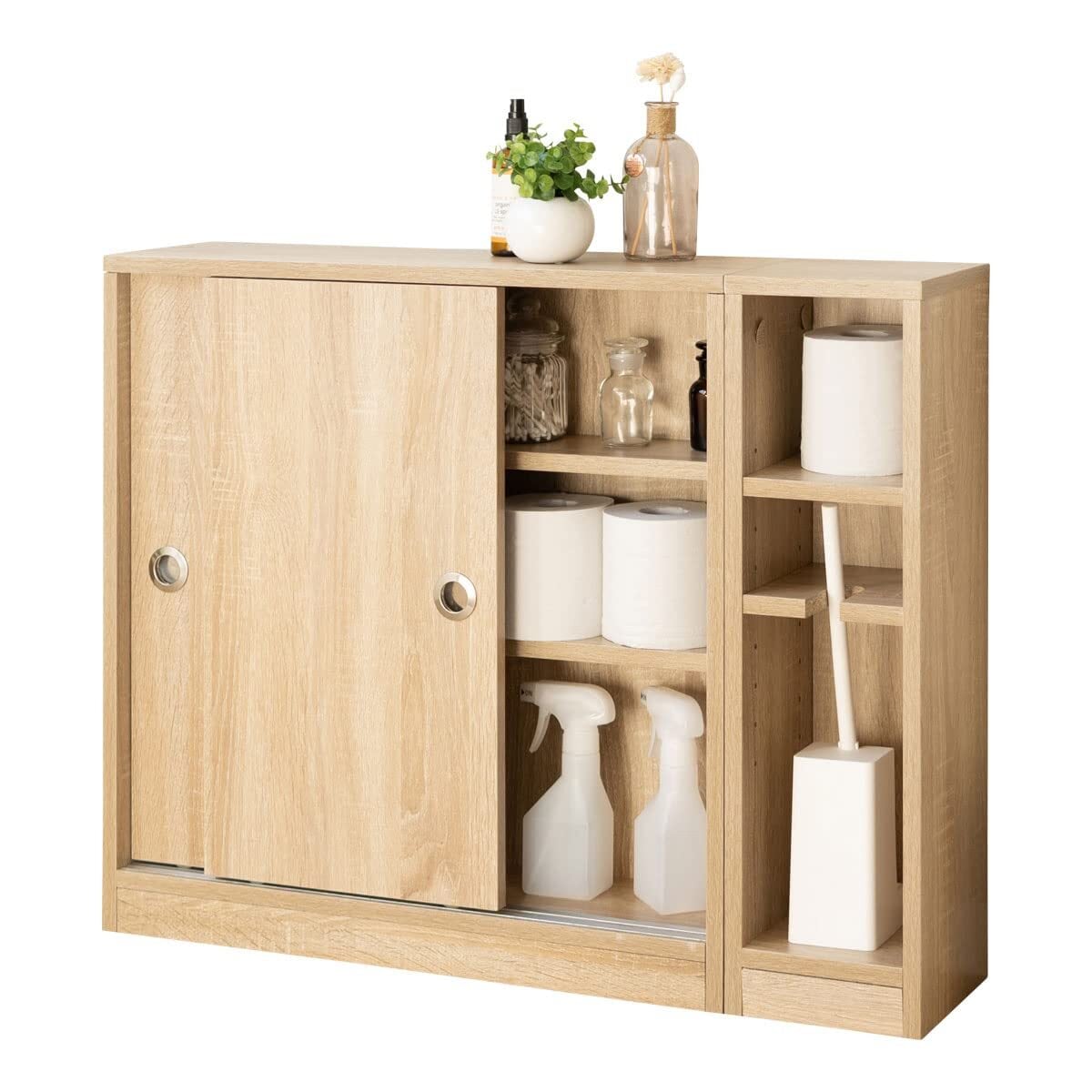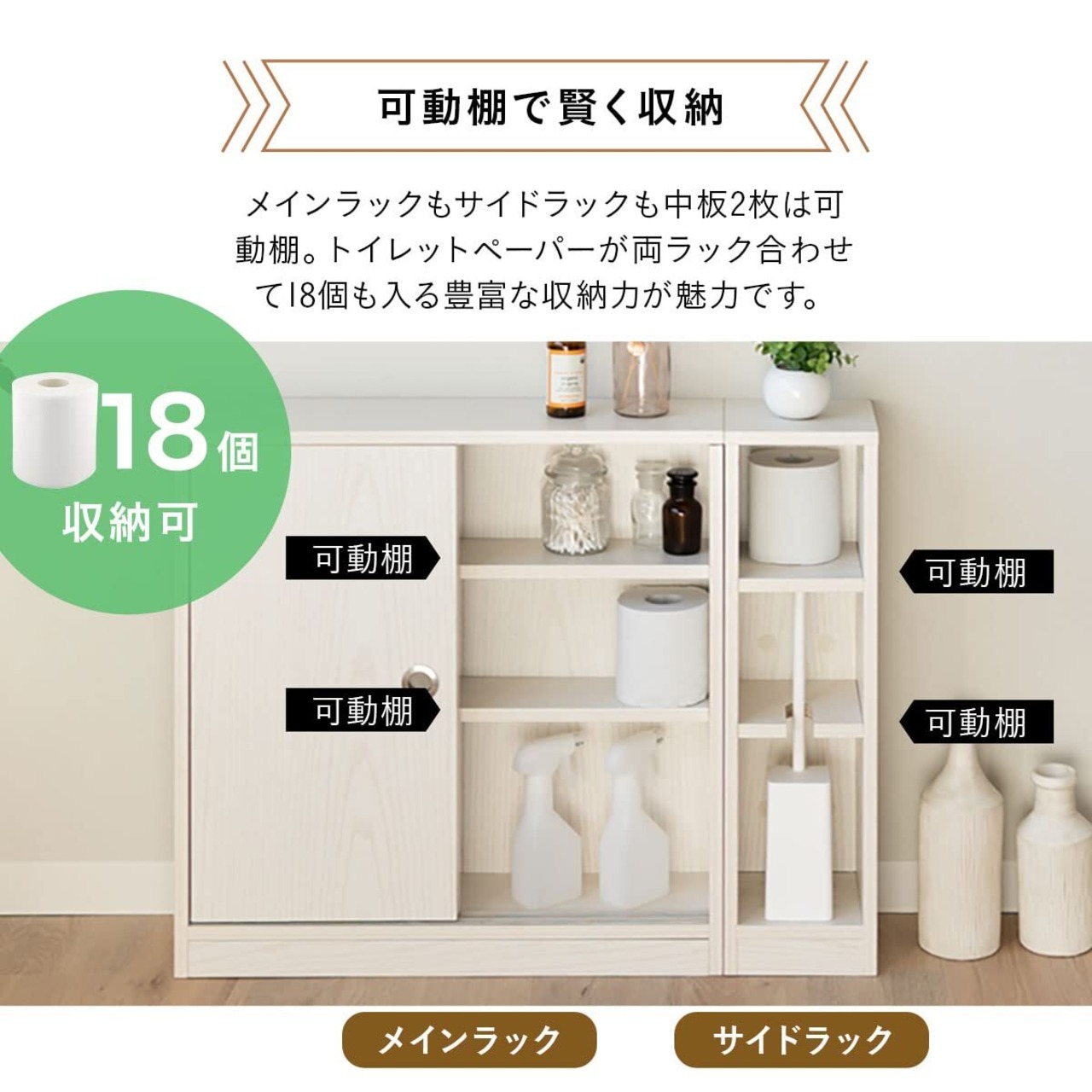 エムール トイレスリムラック ナチュラル 約幅77×奥行17×高さ60cm トイレ ラック 棚 収納 スリム 可動棚 サイドラック付き