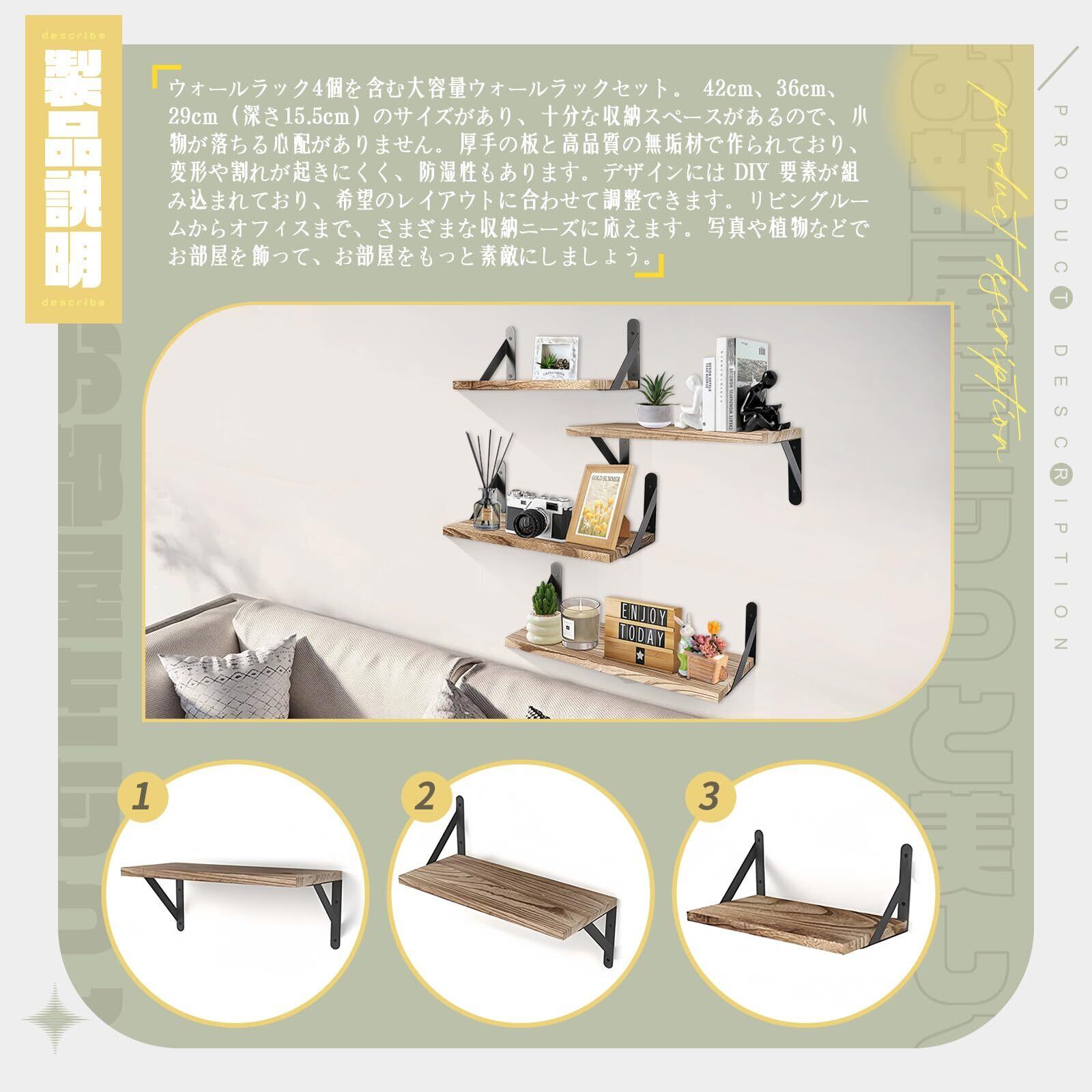 【マルチファンクション収納】:4つの壁つけ棚は、あなたの収納ニーズに対応します。リビング、エントランス、寝室、キッチン、バスルーム、オフィスなど、さまざまな場所で小物を収納するのに非常に適しています。写真、コレクション品、小型観葉植物などを壁棚に置き、家を整理整頓し、美しく保ちましょう。