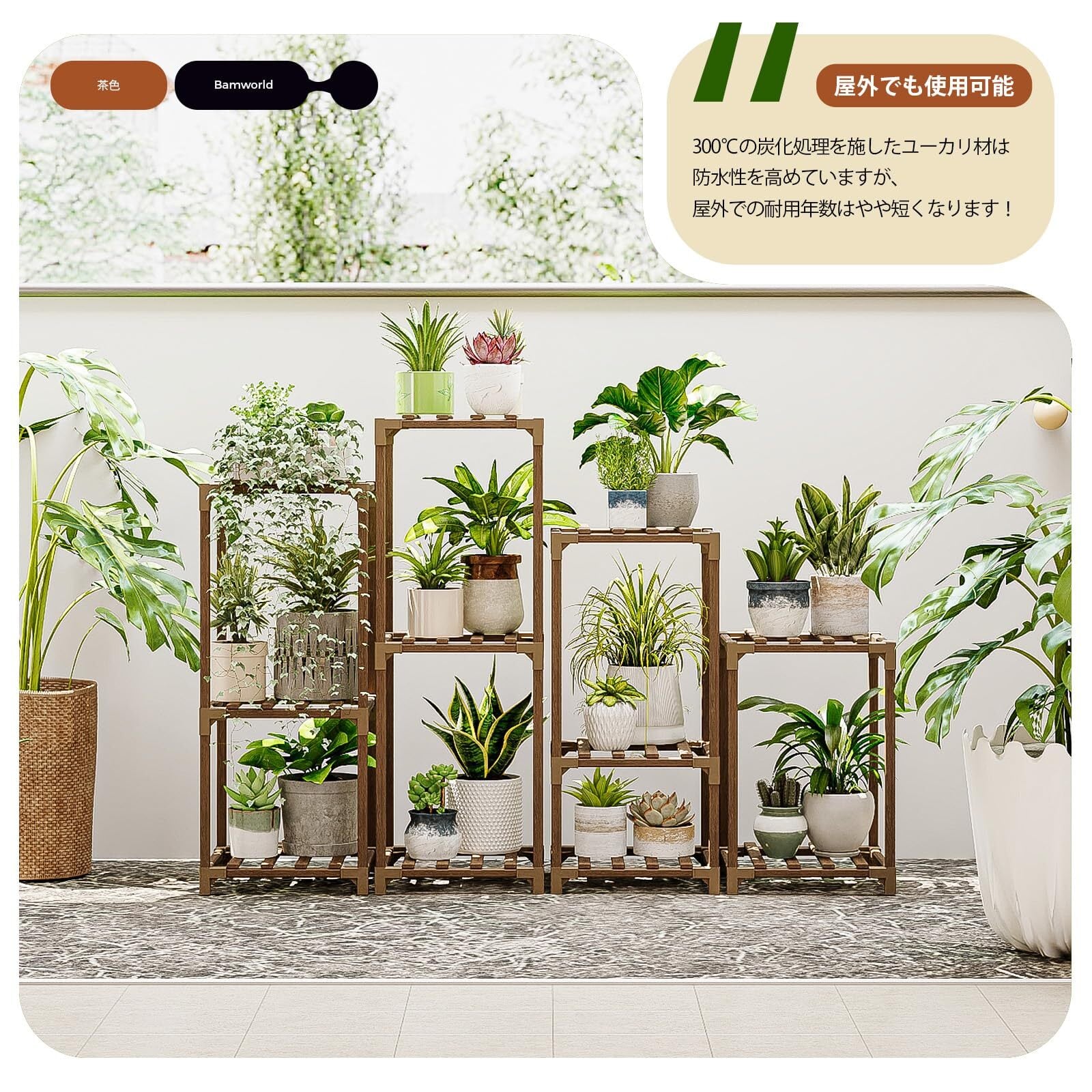 Bamworld フラワースタンド 室内屋外 プランタースタンド 園芸 観葉植物 台 木製花台 ガーデンラック 植物 棚 植木鉢台 ガーデン ベランダ