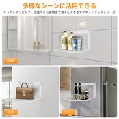 【折り畳み式で省スペース】お風呂上りのバスタオルや着替えの一時置きに便利で、収納スペースが少ない脱衣所などで役立ちます。使わないときは畳んで奥行きわずか2.3cmで、省スペースに収納できます。使いたいときだけサッと引き出せるので、狭いランドリールームや洗面所でも設置しやすく、洗濯物を取り出すときなども動線を邪魔しない嬉しいマグネット棚ラックです。棚を畳んで収納するときは、上部のマグネットでしっかり固定できます。収納時に勝手に開いてしまう心配もありません。