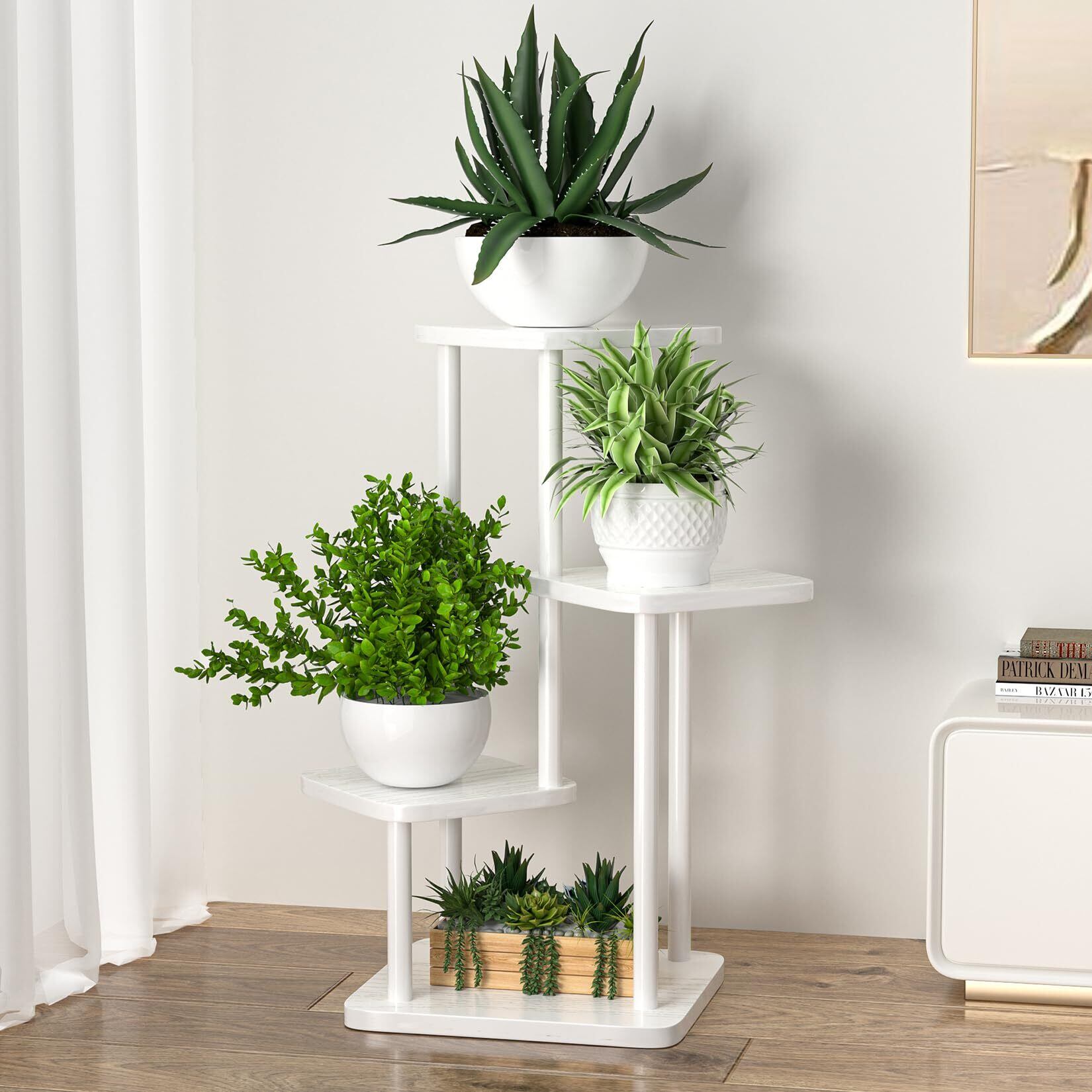 フラワースタンド屋内 金属花棚、多様な植物コーナー高花棚に適し、庭ガーデンリビングベランダ寝室、 (ホワイト, 4 段)