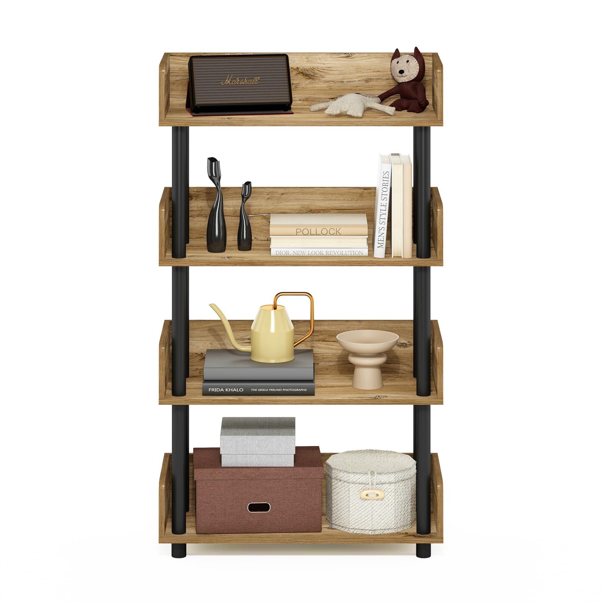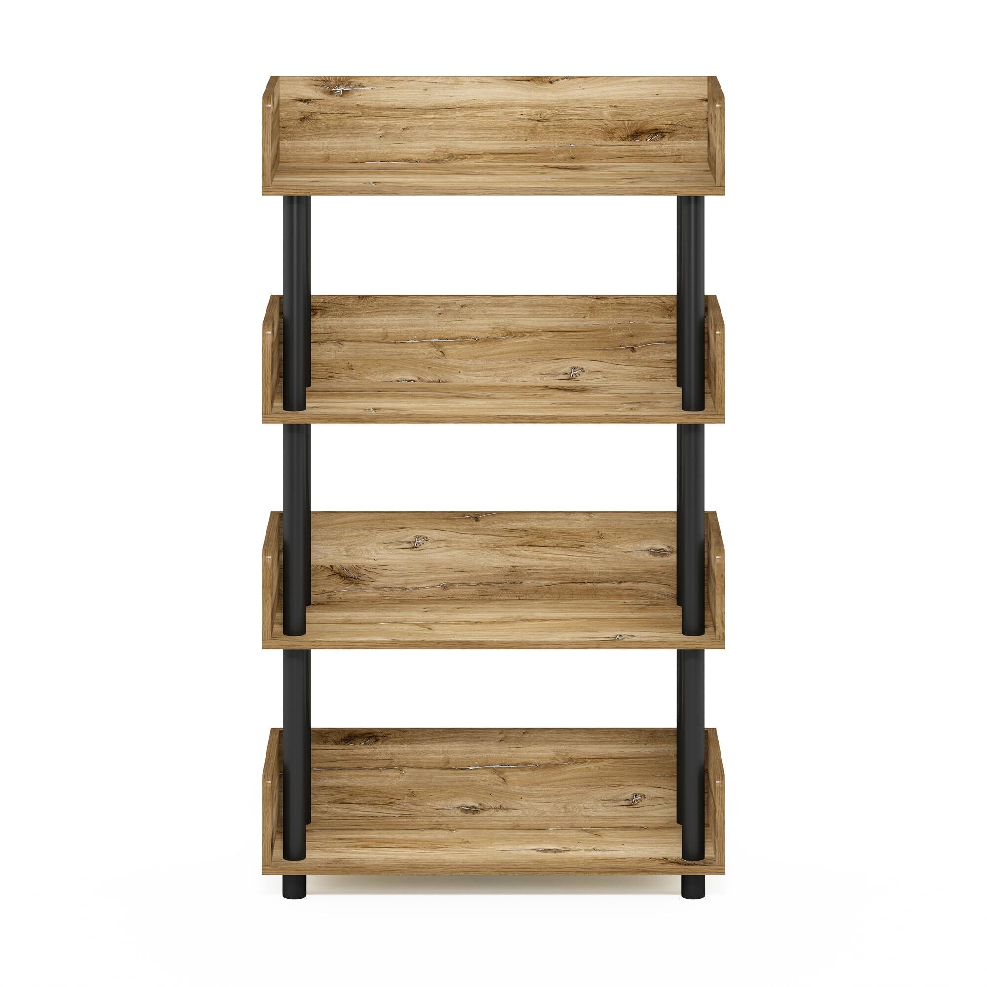Furinno(フリノ) 多目的収納ラック フリーラック 背面・側面パネル付きディスプレイ収納ラック フラッグスタッフオーク/ブラック 4段 ターンNチューブ 自立式