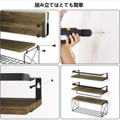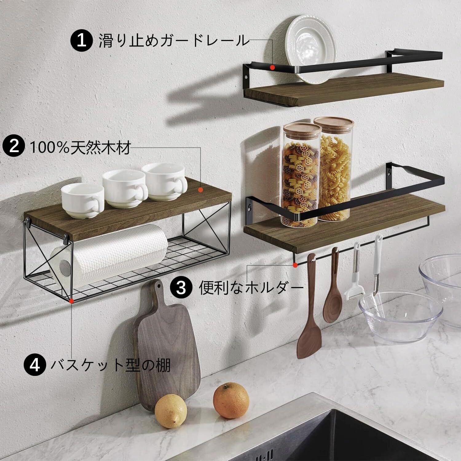 ✿【行き届くデザイン】①頑丈な金具落下防止ガード付いていますので、地震で多少揺れでも品物を滑り落ちることは心配しません。 ②バスケット付きの棚が1つあり、通気性がよくて湿気に弱い物も収納できます。 ③ホルダー付きの棚が1つあり、キッチンで食器や調理器具など、トイレでタオルなどを掛けられます。