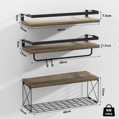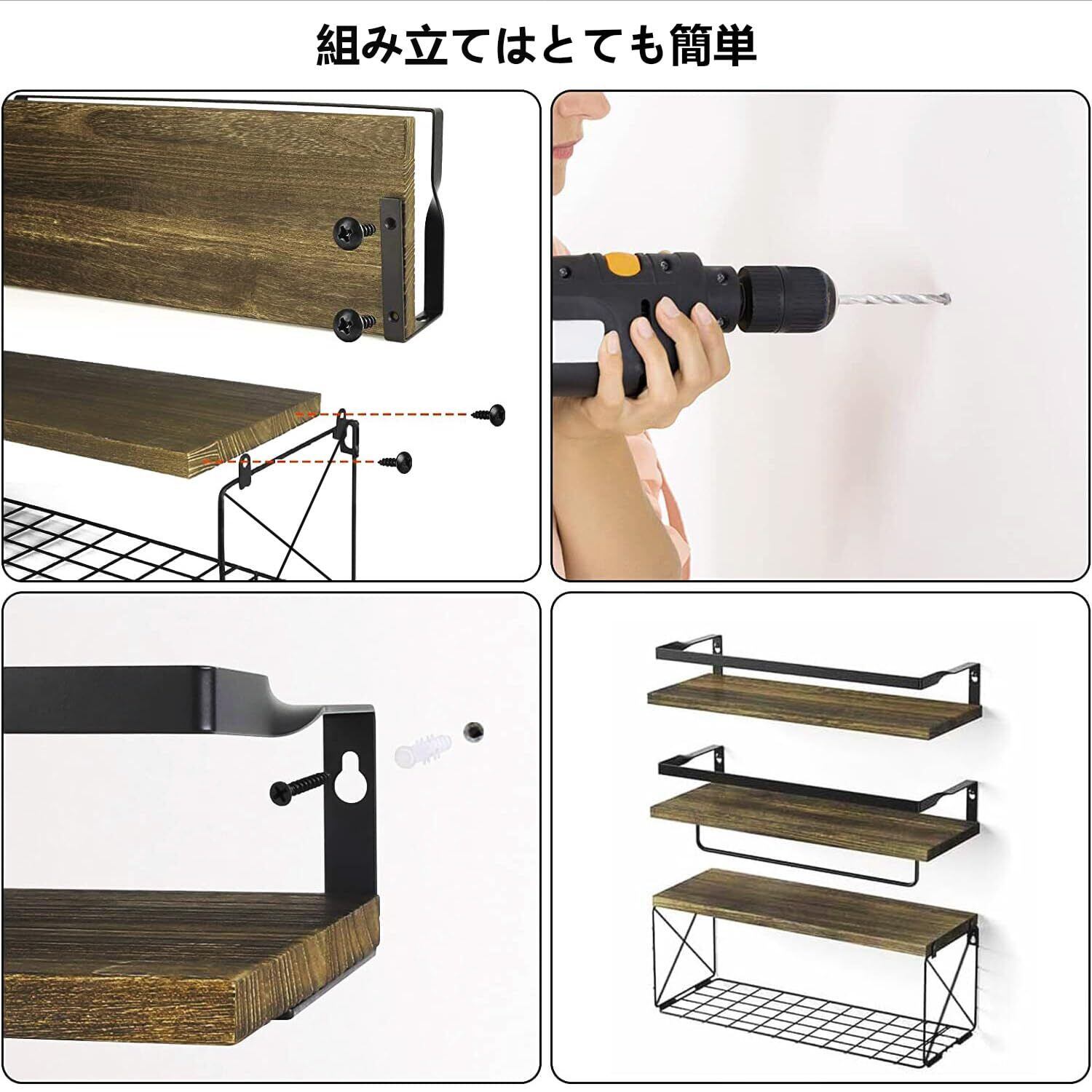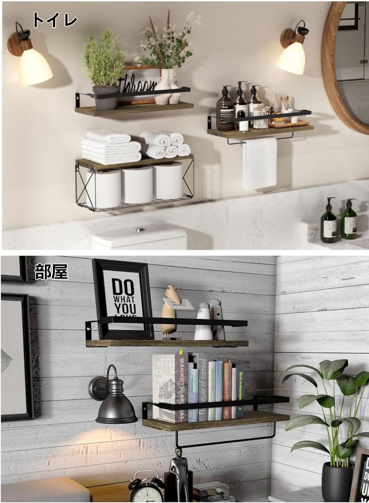✿【取り付け簡単】自分でドリルなどの工具で穴あけ必要がありますが、簡単に取り付けるために必要なものがすべて含まれています:取付説明書×1、金属製ガードレール付き棚板×2、収納バスケット付き棚板×1、タオルバー×1、壁に固定するためのネジと拡張ボルト×6セット、棚とガードレールを連結するためのネジ×8。指示に従うだけで、数分以内に壁棚がしっかりと取り付けられ、殺風景だった壁が一気にオシャレなインテリアに早変わりです。