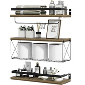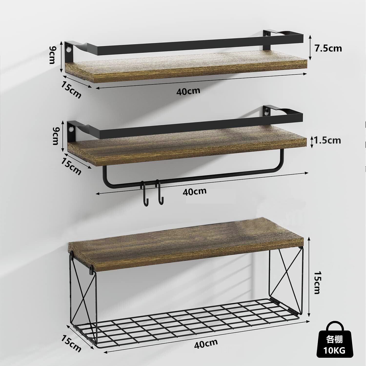 ウォールシェルフ 壁掛け棚 木製 壁 飾り棚 4段 ストレージバスケット付き 取り付け簡単 防水 防カビ ナチュラル ウォールラック 玄関/キッチン/洗面所/寝室 幅40×奥行き15