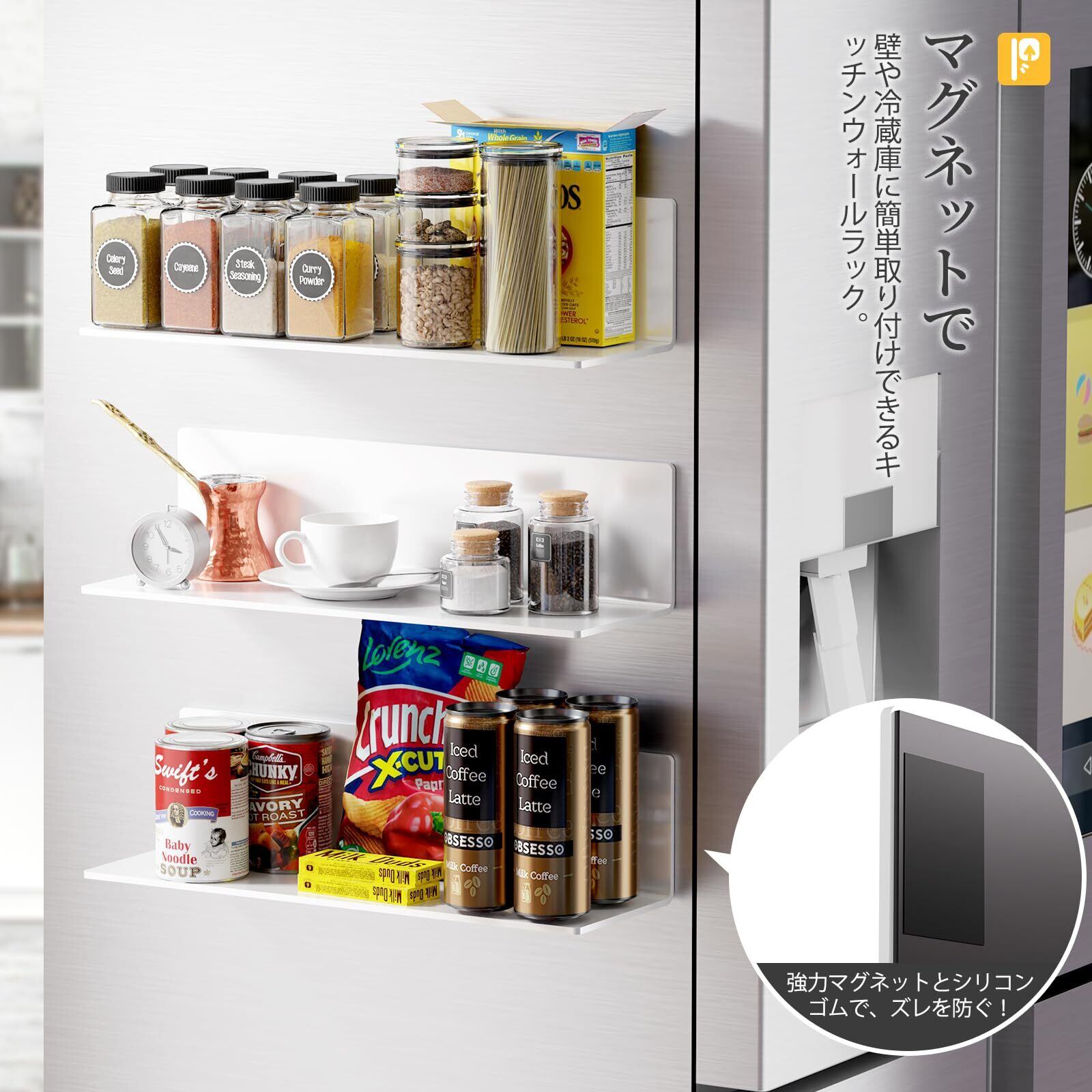 【超強力マグネット】背面に超強力マグネットが付いているので、耐荷重は6kg収納できます。強力マグネットで貼り付けるだけの簡単設置で、冷蔵庫横が大容量収納スペースに。マグネットが付くキッチンパネルにも。冷蔵庫や金属壁に簡単に固定できるマグネットキッチン棚です。 スパイスが一目でわかるので、引き出しを探し回る必要がなく、快適な調理スペースが作れます。