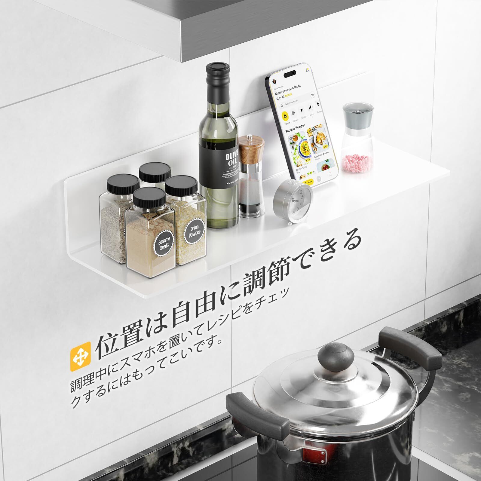 PAVSTINE マグネット キッチンラック 調味料ラック 約W43XD14XH11cm アクリル製品 錆びない 超強力 マグネット 棚 飾り棚 ウォールラック キッチン棚 お風呂ラック 多機能 マグネット収納 バスルーム/洗面台/洗面所/風呂収納 ワイドホワイト