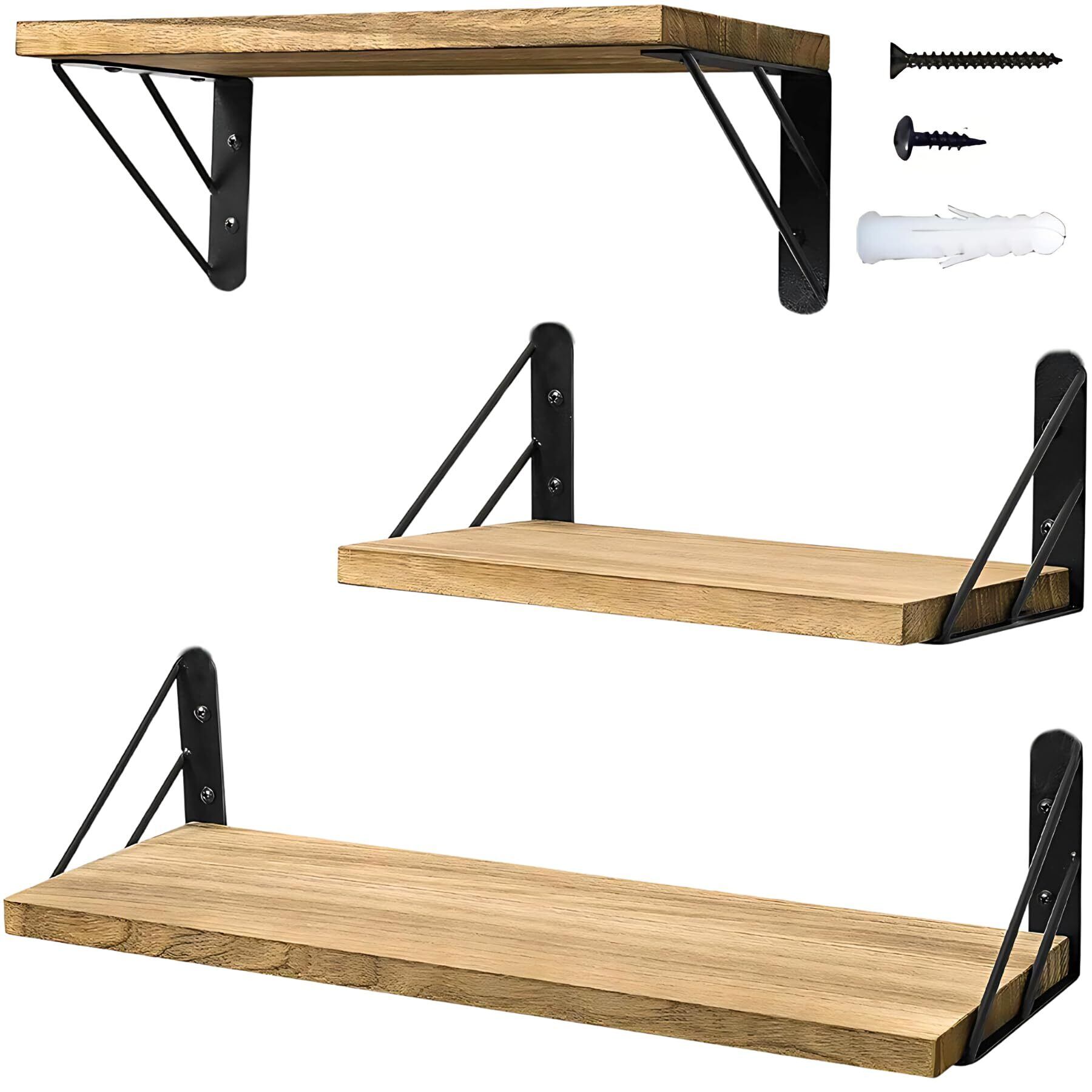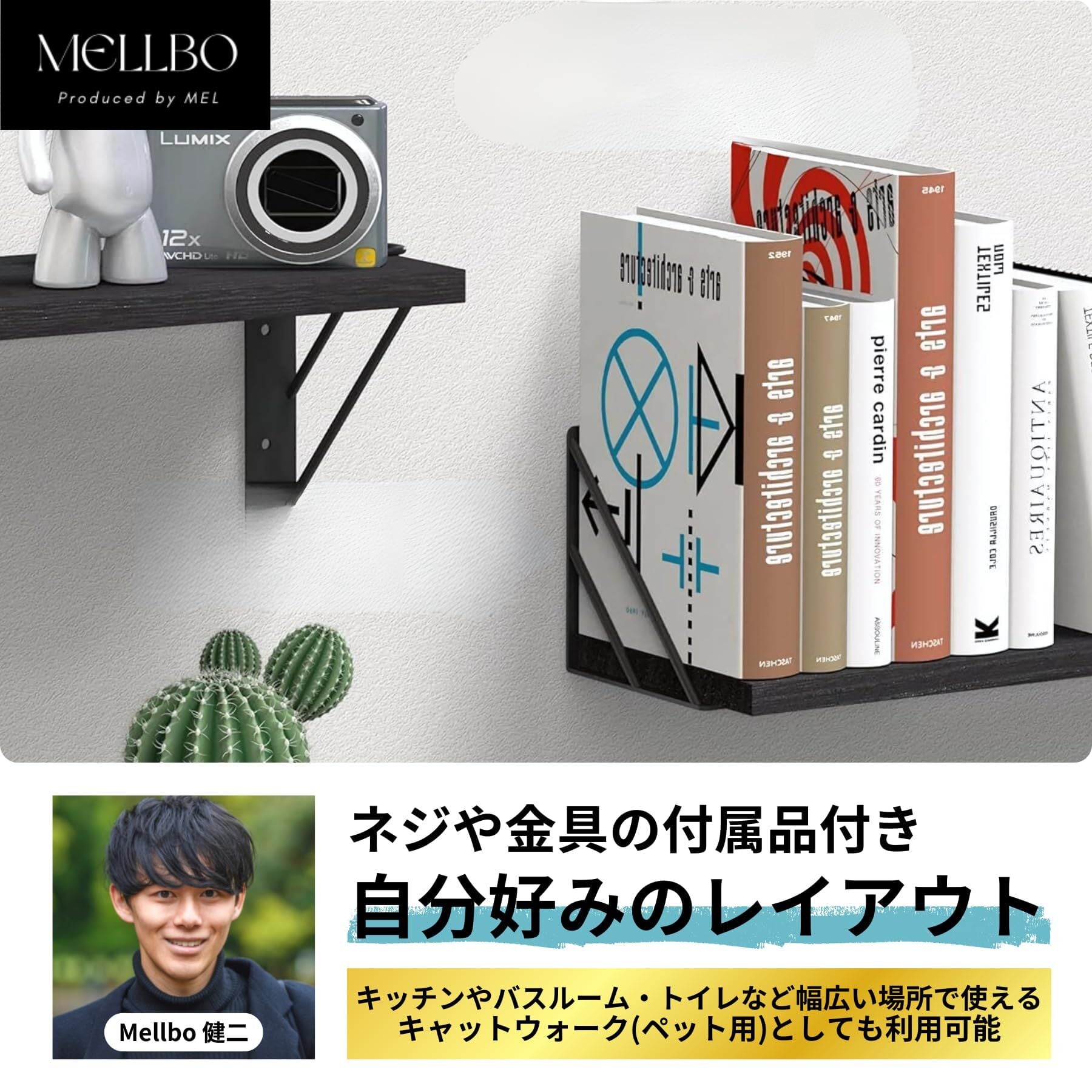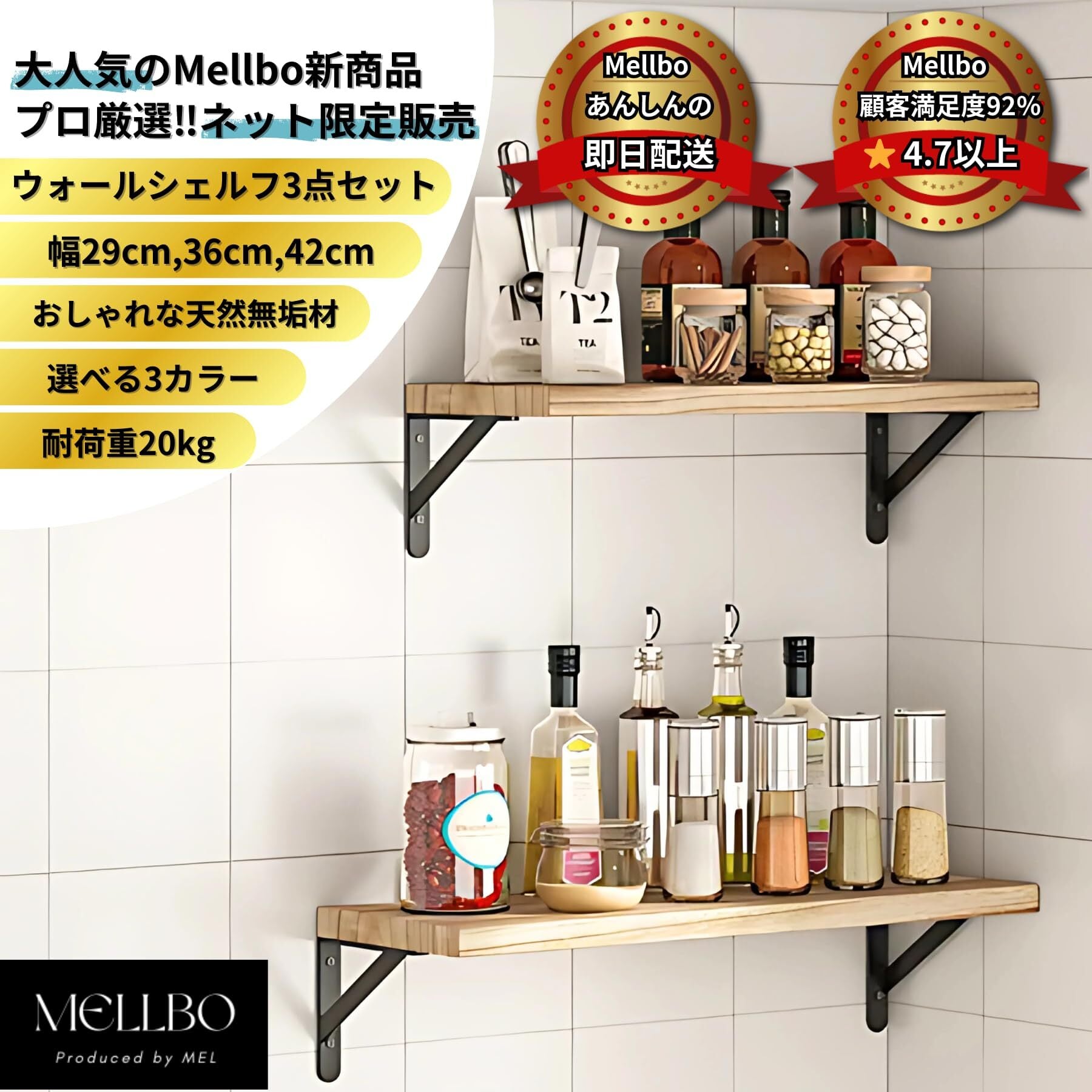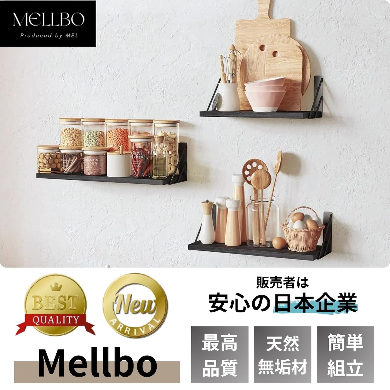Mellbo ウォールシェルフ 壁掛け棚 ウォールラック 壁掛けラック 天然無垢材 スチール 大中小3種類の幅 奥行き15cm 3個セット ブラウン