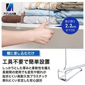 【商品仕様】・サイズ(約):パネル部28cm × 20cm、固定バックル幅3cm/高さ3.5cm/奥行9cm・対応棚板厚み:2〜2.4cm未満の棚板に対応・カラー:クリア(透明)・素材:高耐久プラスチック・セット内容:4個セット/6個セットの2タイプ展開※モニター環境により、商品画像と実際の色味に差が出る場合があります。棚板の厚さを必ずご確認のうえご購入ください。