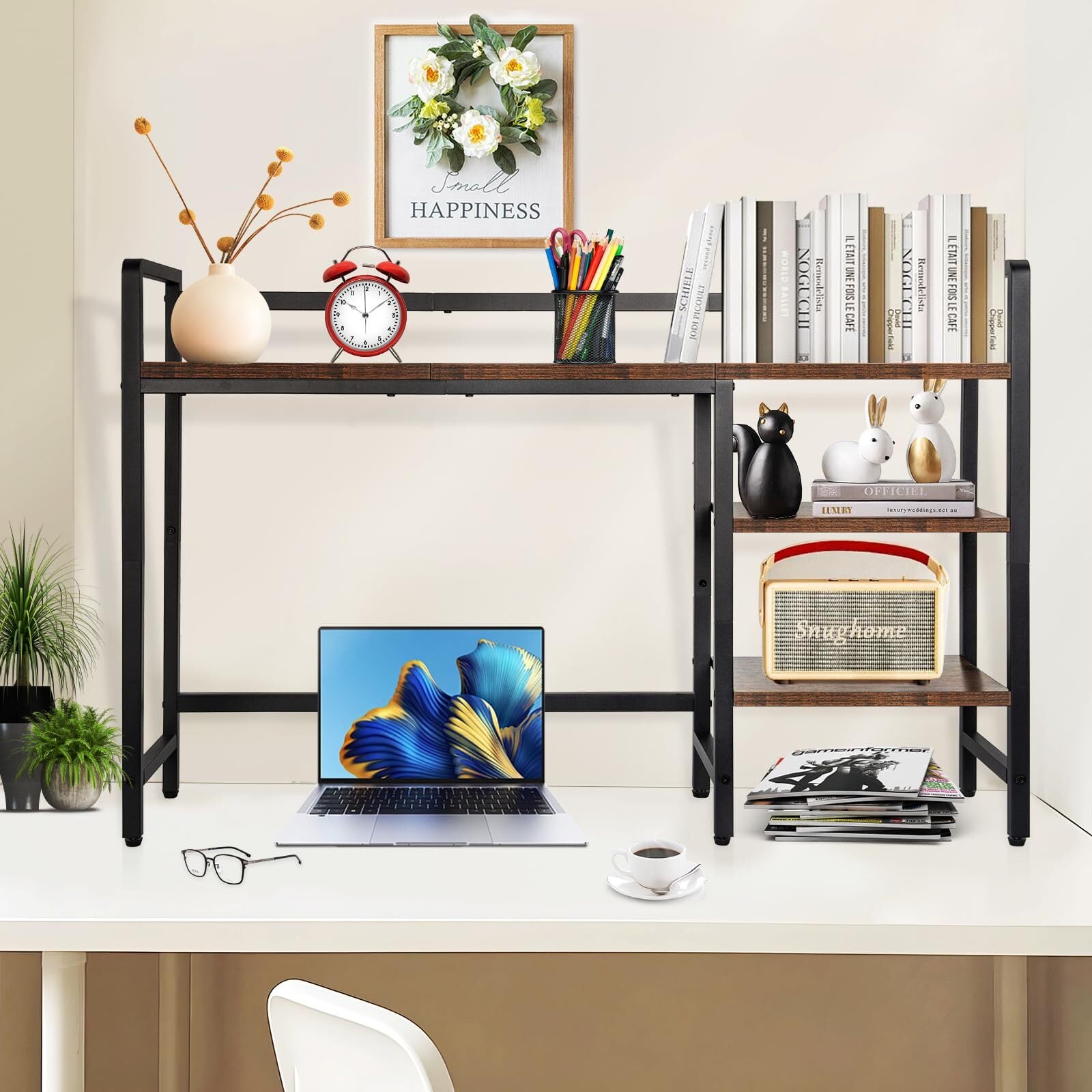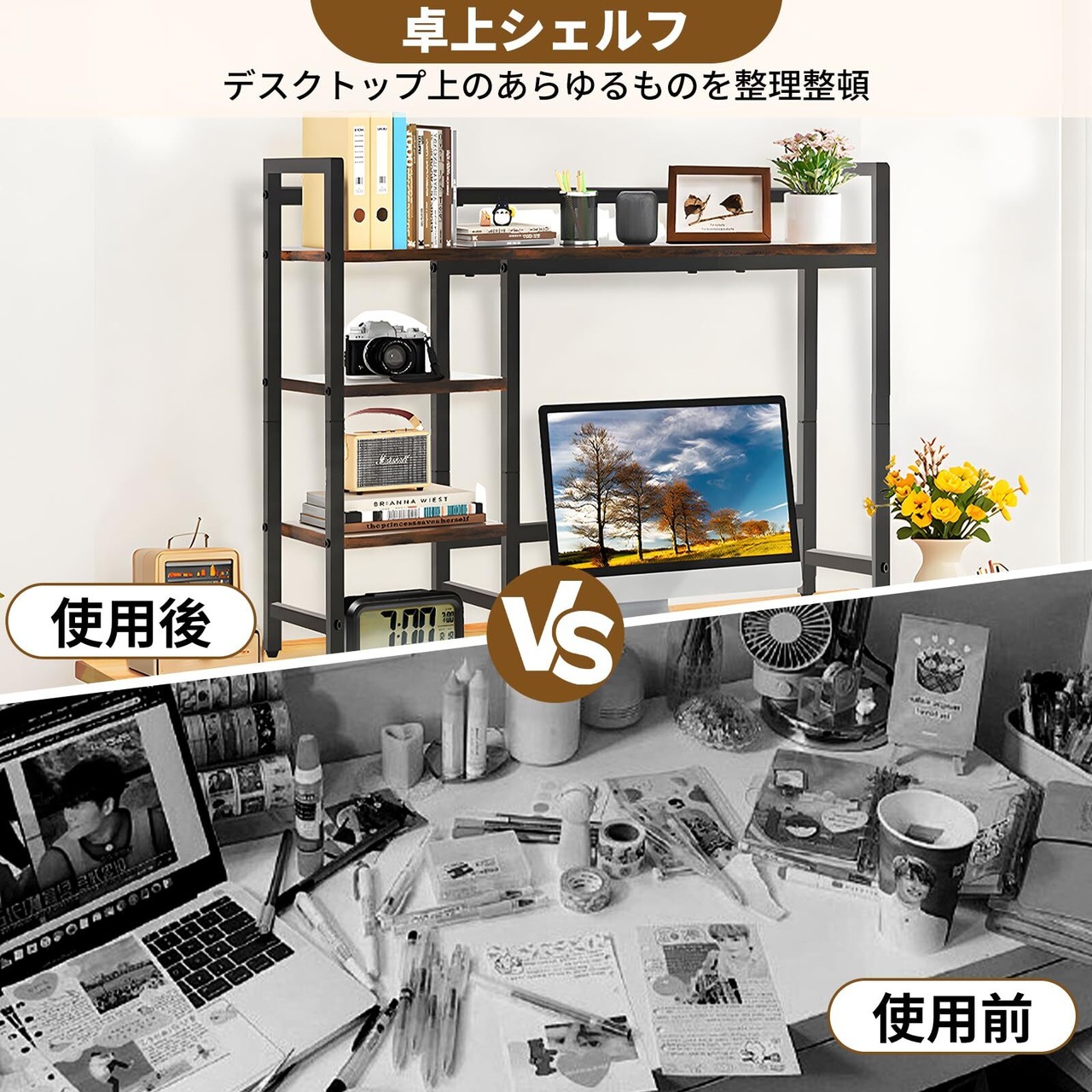 Rxakudedo デスク上収納ラック 卓上ラック 棚 多機能 オフィス収納棚 長さ114CM 3段 ブラウン 整理整頓 効率アップ スタイリッシュ収納