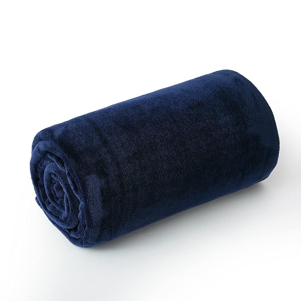 AIFY 毛布 膝掛け ブランケット 夏用 冷房対策 マイクロファイバー もうふ フランネル オールシーズン 軽い おしゃれ 薄手 軽量 掛け毛布 四季適用 北欧 洗える 70×100cm ネイビー